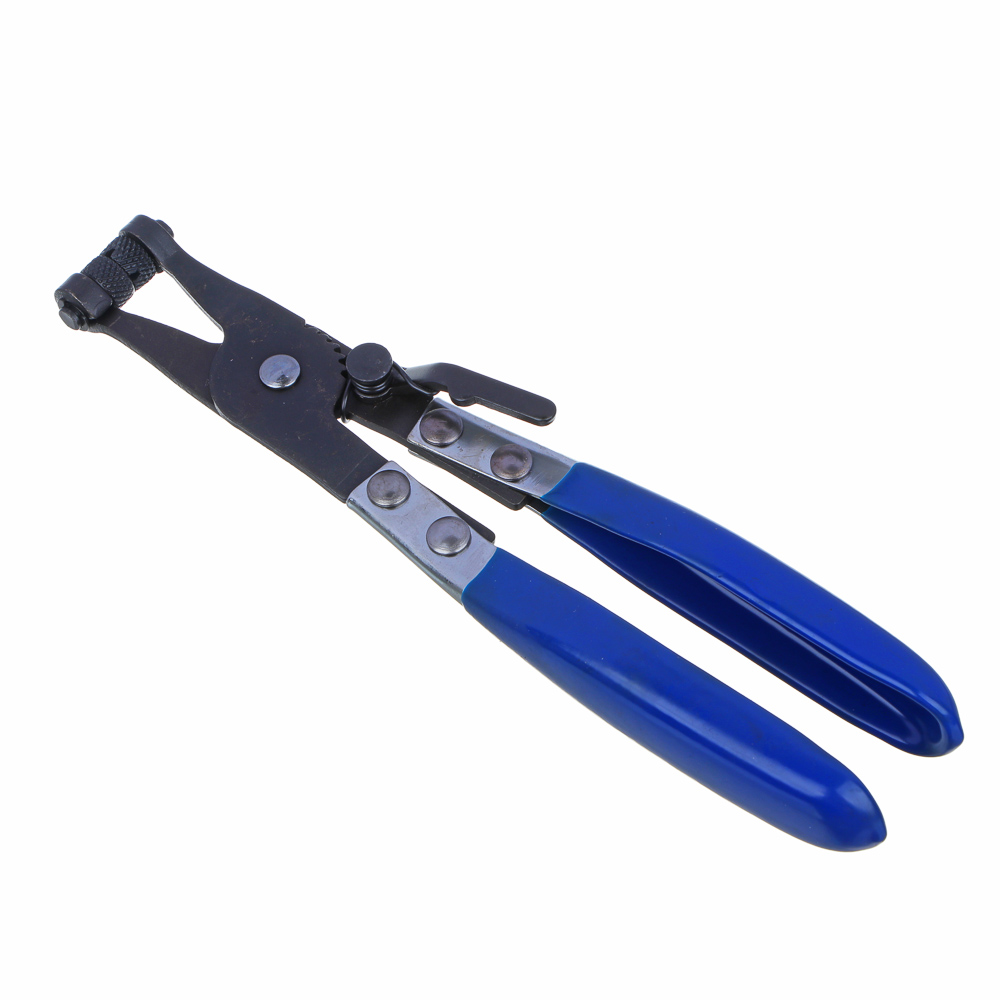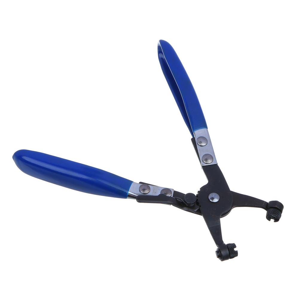 Загнутые клещи для самозажимных пружинных хомутов применяются для установки или снятия хомутов в водяных и топливных шлангах транспортного средства. Инструмент имеет трещоточный механизм, благодаря чему хомут можно установить в разжатом виде.Достоинства инструмента:- конструкция эргономичной формы позволяет работать в проблемных местах;- изготовлен из прочных износостойких материалов;- для доступа к труднодоступным участкам рабочая часть изогнута под углом 45 градусов.Щипцы совместимы с большинством самозажимных хомутов. Благодаря прорезиненным накладкам на рукоятках инструмент не выскальзывает даже с влажной ладони.