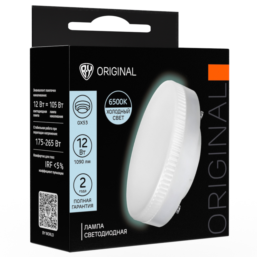 BY Лампа светодиодная GX53 12 Вт, 1090 Лм, 6500 K, 175-265 В, Ra>80, IRF <5%