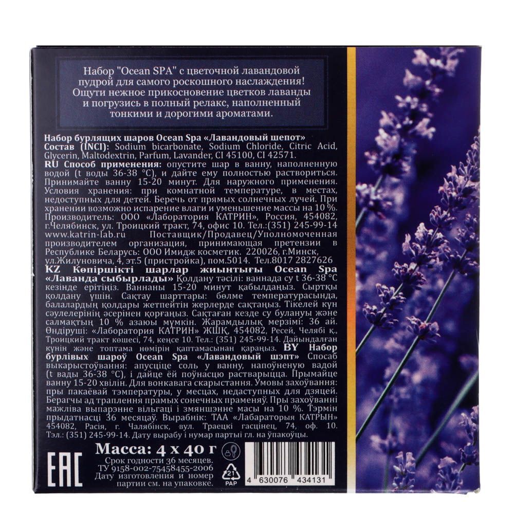 Набор бурлящих шаров для ванн Ocean Spa Лавандовый шепот/Лепестки роз, 4x40г