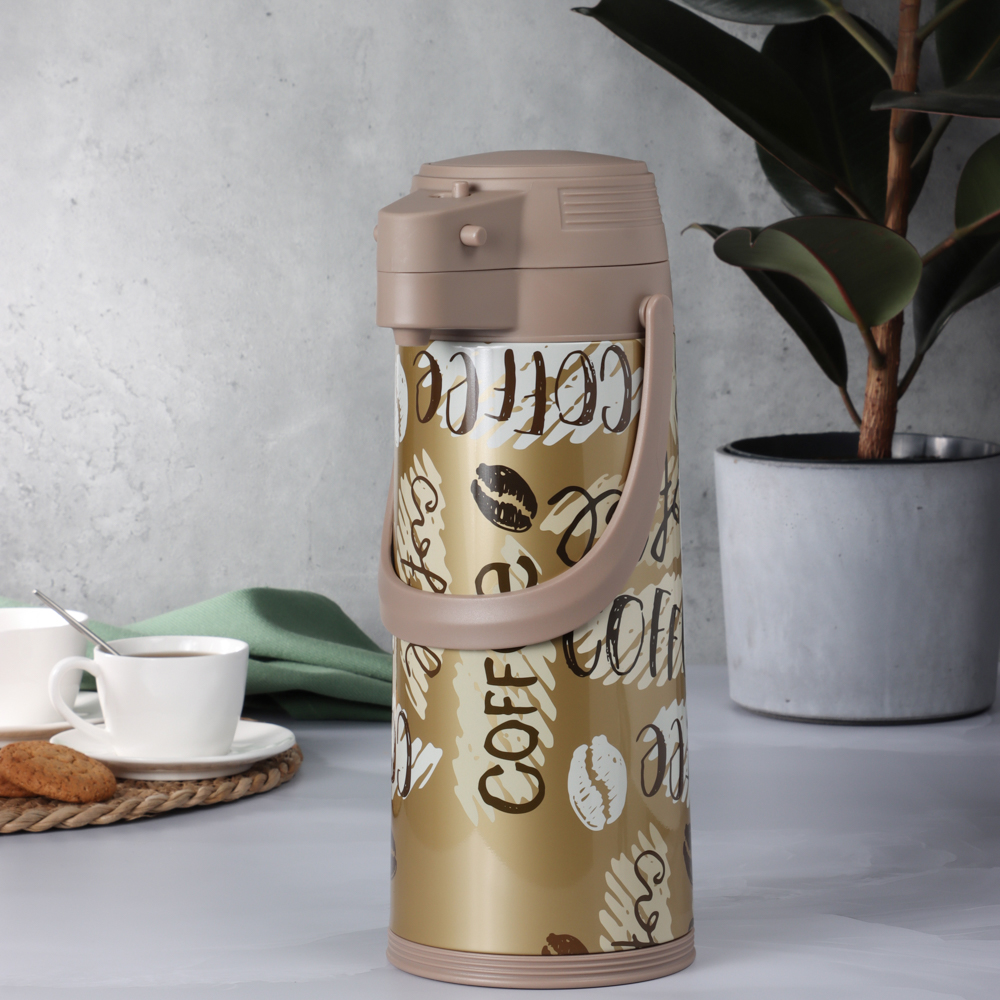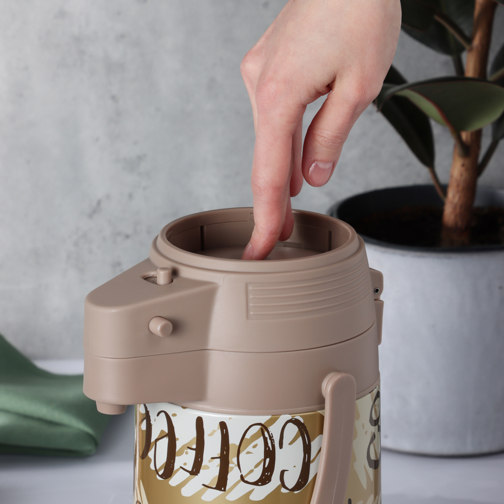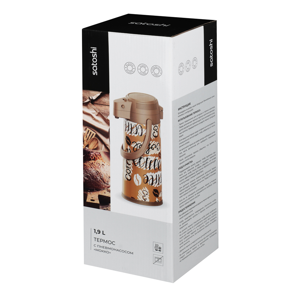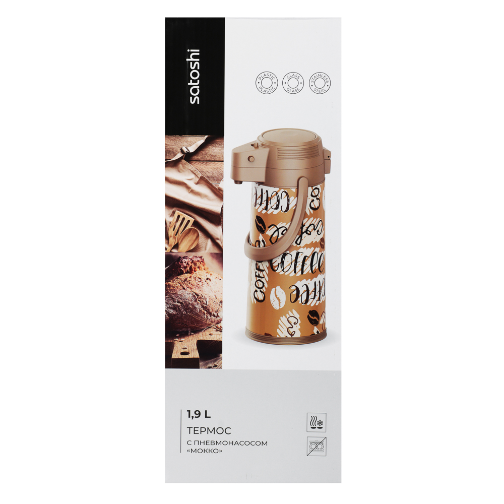 Термос SATOSHI со стеклянной колбой и пневмонасосом «Мокко» объёмом 1,9 л — отличный выбор для горячих напитков, таких как чай или кофе. Благодаря стеклянной колбе термос сохраняет тепло и не меняет вкус напитка. Термос оснащен удобной ручкой для переноски и специальным носиком для наливания напитка. Завинчивающаяся герметичная крышка предохраняет от проливаний, а кнопка дозатора-помпы позволит каждый раз не открывать крышку. Эргономичный дизайн делает этот термос удобным для использования в офисе, на прогулке или пикнике.