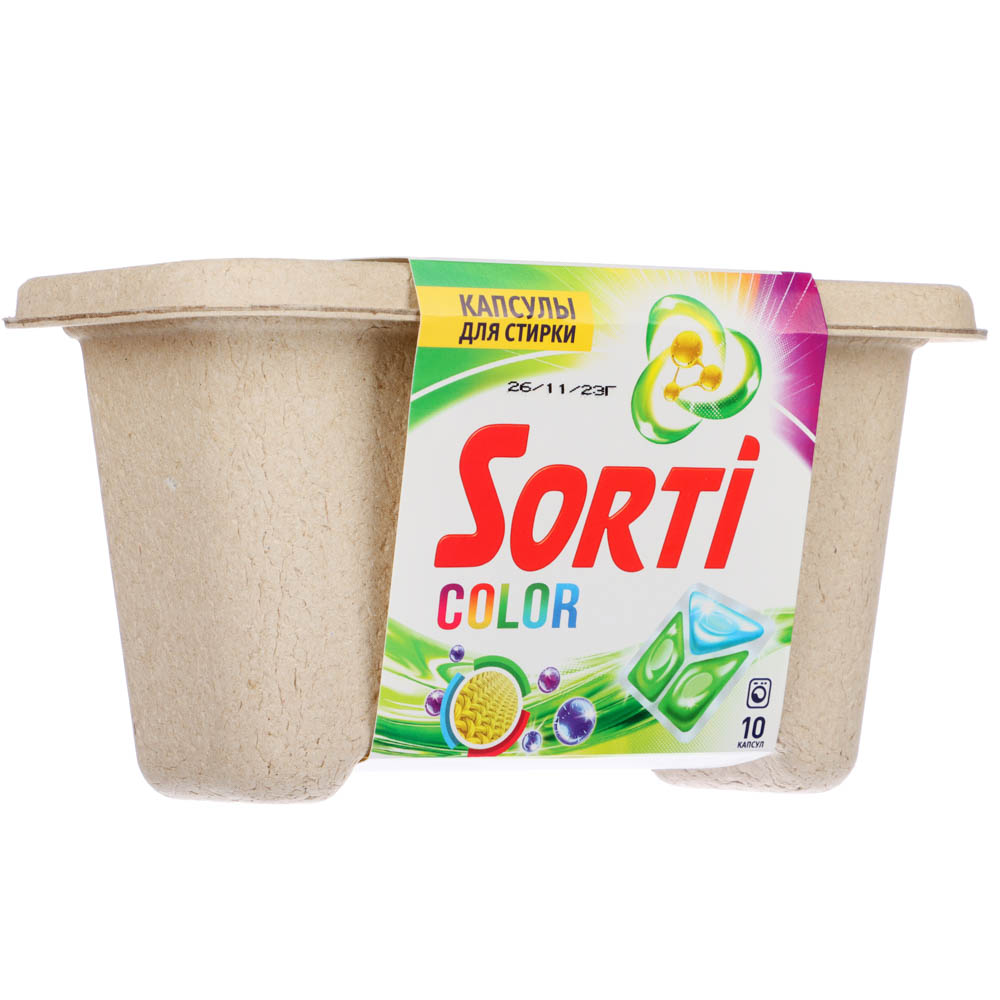 Капсулы для стирки Sorti Color идеально подходят для стирки цветных и темных вещей, так как они сохраняют яркость и насыщенность цветов. Они содержат уникальную формулу, которая эффективно удаляет различные виды загрязнений, в том числе пятна от травы, жира и грязи. Кроме того, капсулы Sorti Color защищают стиральную машину от образования накипи и известкового налета. В упаковке 10 капсул, которых хватает на несколько стирок. Капсулы Sorti Color подходят как для ручной, так и для машинной стирки, а температура воды должна быть в диапазоне от 30 до 60 градусов Цельсия.