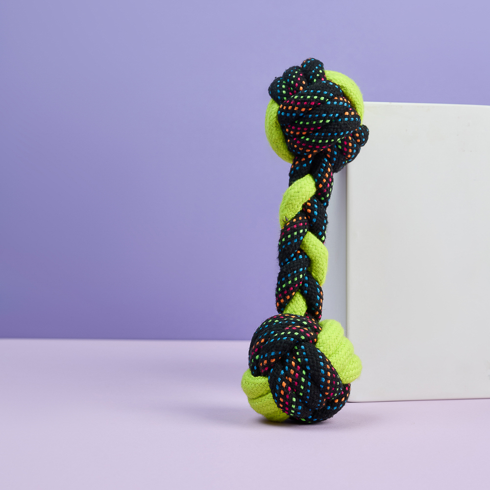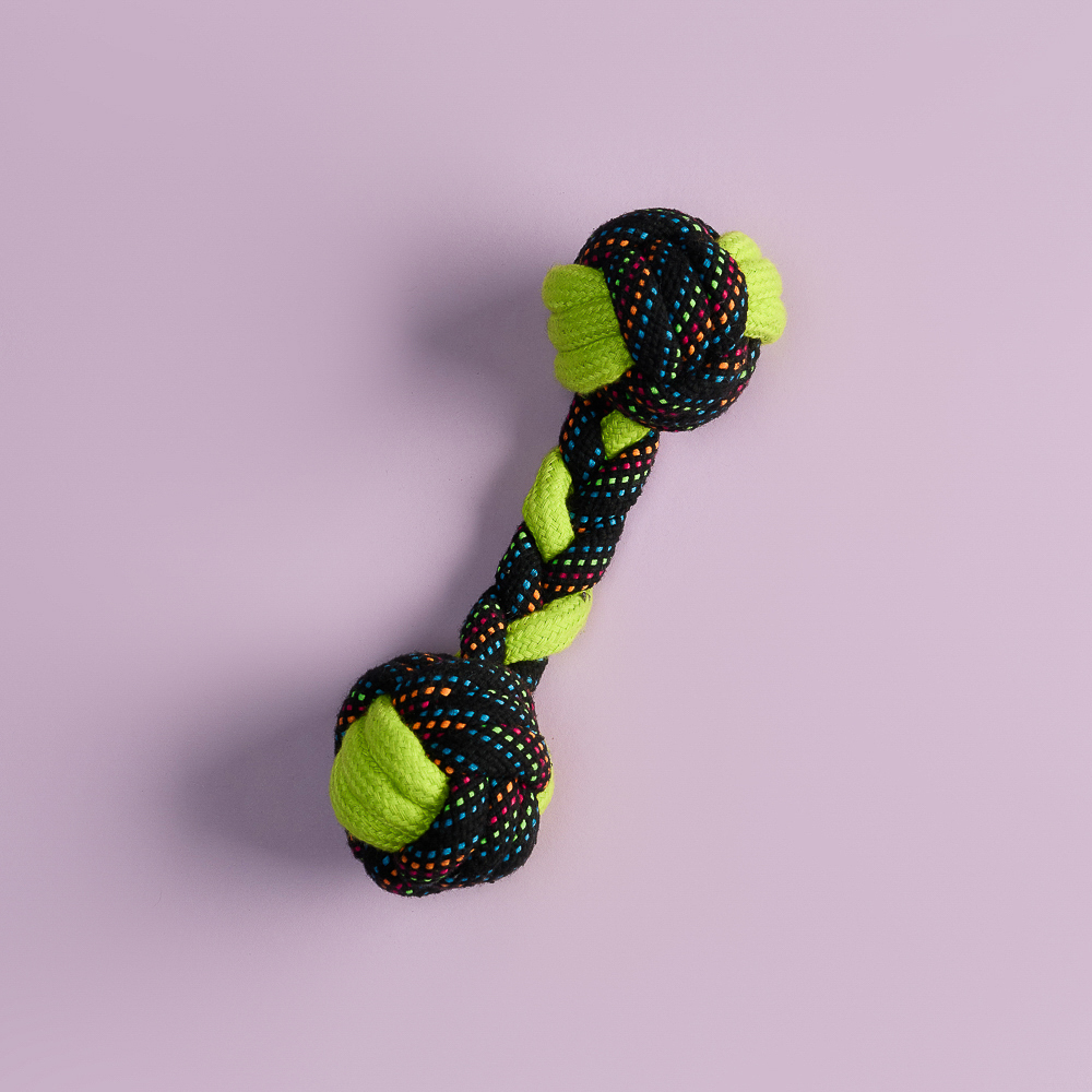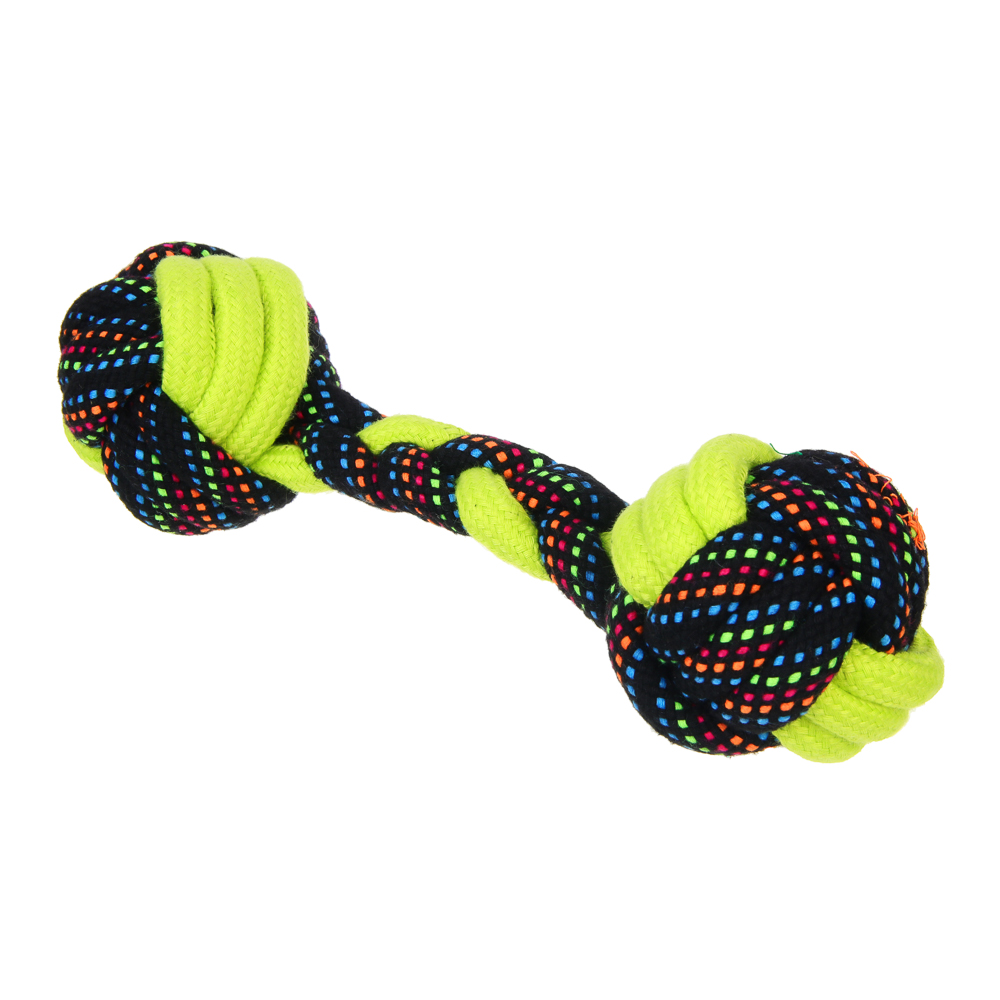 Канатная игрушка "Гантель" – прочная и безопасная игрушка для собак средних и крупных пород. Изготовленная из 100% натурального хлопка, она обеспечивает максимальную безопасность для здоровья вашего питомца. Эта игрушка идеально подходит для дрессировки, тренировок и активных игр, как дома, так и на улице. Гантель не издает шума, что делает её отличным выбором для собак, которые боятся громких звуков. Игры с гантелью помогают снять эмоциональное напряжение и развивают жевательные мышцы. Даже при нарушении целостности, игрушка остаётся безопасной, не травмируя ротовую полость собаки. Хлопковая веревка массирует десны, обеспечивая дополнительный уход за зубами.Удобная в использовании, прочная и легко стирается в машине, эта канатная игрушка станет любимым аксессуаром для вашего питомца. Размер 23 см идеально подходит для собак, которые любят активные и полезные игры.