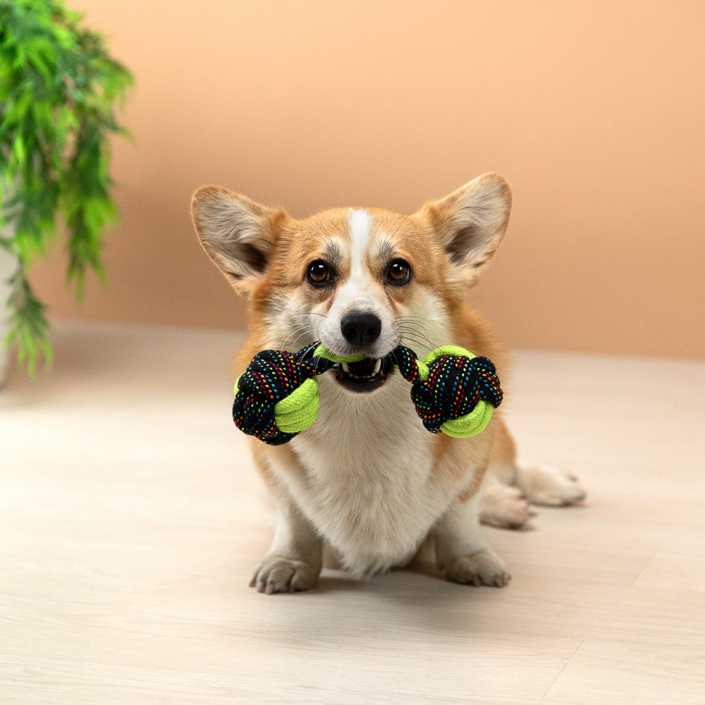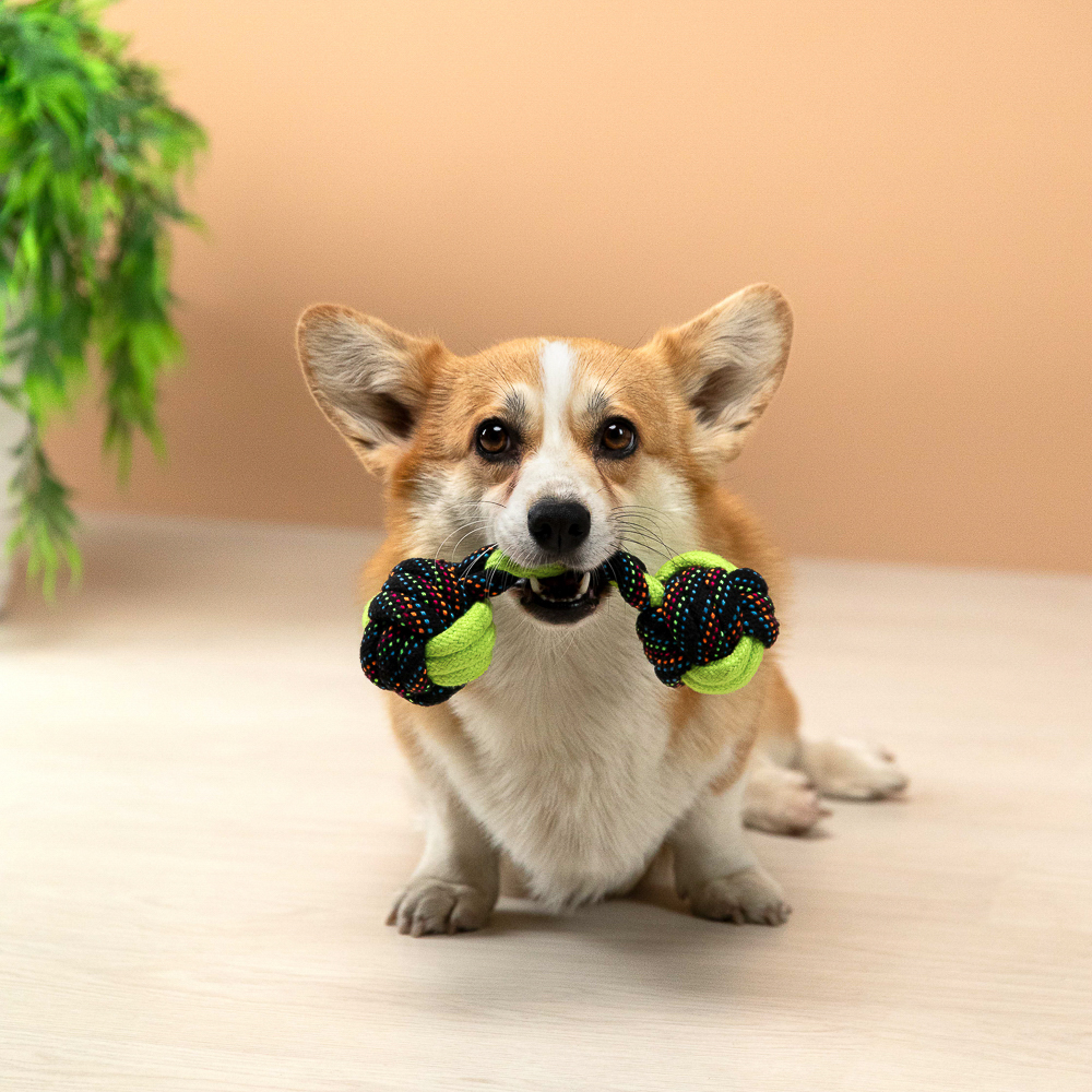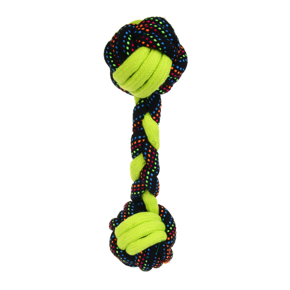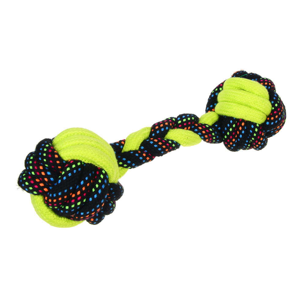 Канатная игрушка "Гантель" – прочная и безопасная игрушка для собак средних и крупных пород. Изготовленная из 100% натурального хлопка, она обеспечивает максимальную безопасность для здоровья вашего питомца. Эта игрушка идеально подходит для дрессировки, тренировок и активных игр, как дома, так и на улице. Гантель не издает шума, что делает её отличным выбором для собак, которые боятся громких звуков. Игры с гантелью помогают снять эмоциональное напряжение и развивают жевательные мышцы. Даже при нарушении целостности, игрушка остаётся безопасной, не травмируя ротовую полость собаки. Хлопковая веревка массирует десны, обеспечивая дополнительный уход за зубами.Удобная в использовании, прочная и легко стирается в машине, эта канатная игрушка станет любимым аксессуаром для вашего питомца. Размер 23 см идеально подходит для собак, которые любят активные и полезные игры.