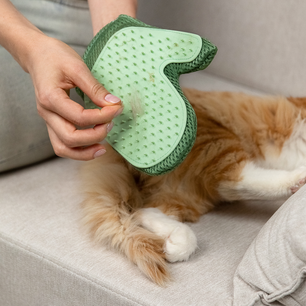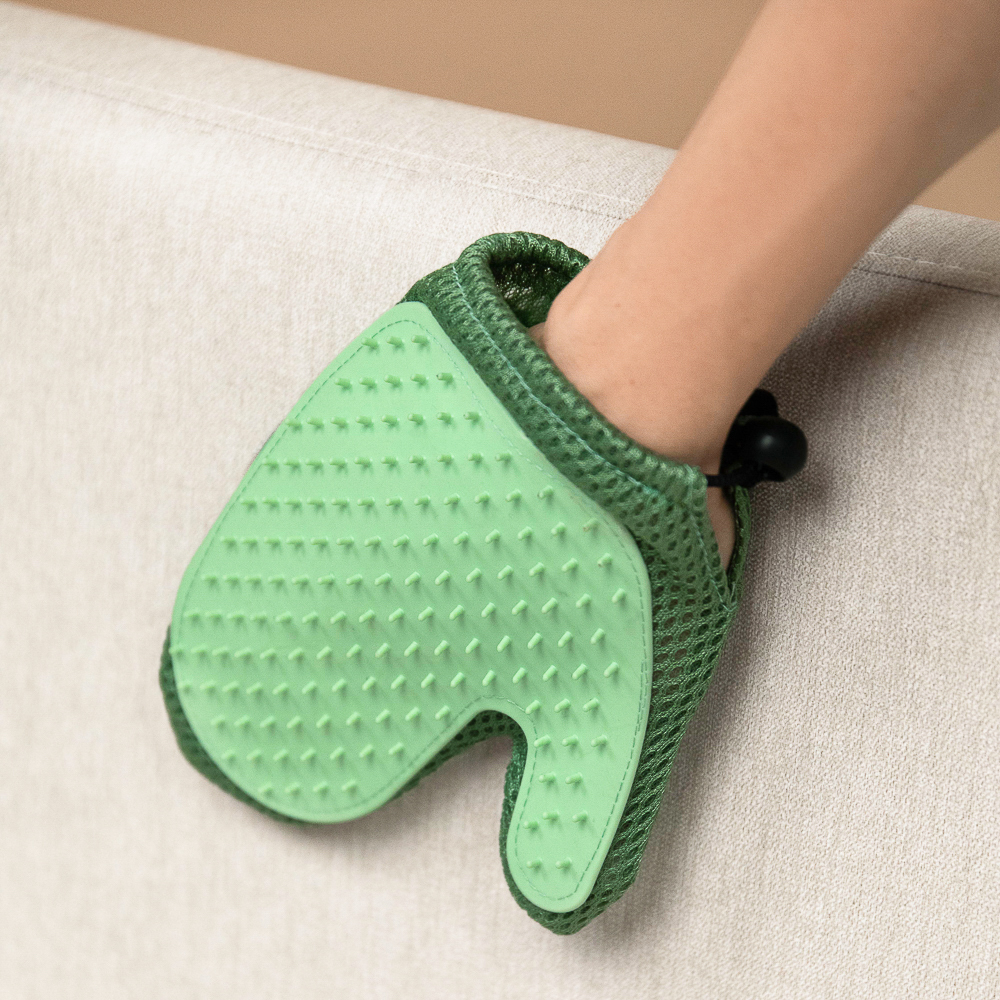 Перчатка-щетка для домашних животных VETTA из нейлона и ТПР имеет универсальный размер 19,5х15,5 см с подтяжкой для фиксации на руке. Подходит для кошек и собак. Используется для ускорения процесса линьки, а также обладает массажным эффектом, улучшая кровообращение. Приятный массаж перчаткой снижает стресс у питомца, при этом шерсть становится ухоженной, а подшерсток эффективно удаляется. Кроме того, перчатка позволяет удалить шерсть с тканей и мягкой мебели. Изделие не требует специального ухода. Для всех типов шерсти.
