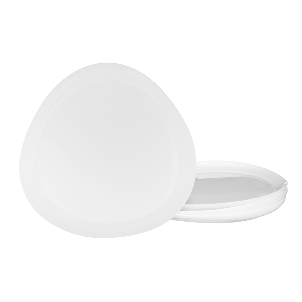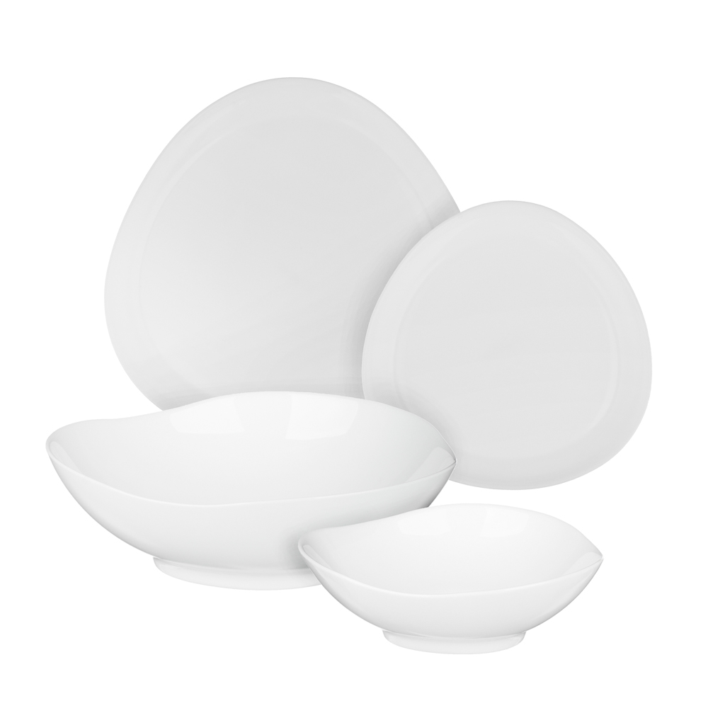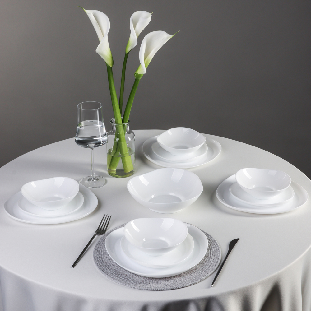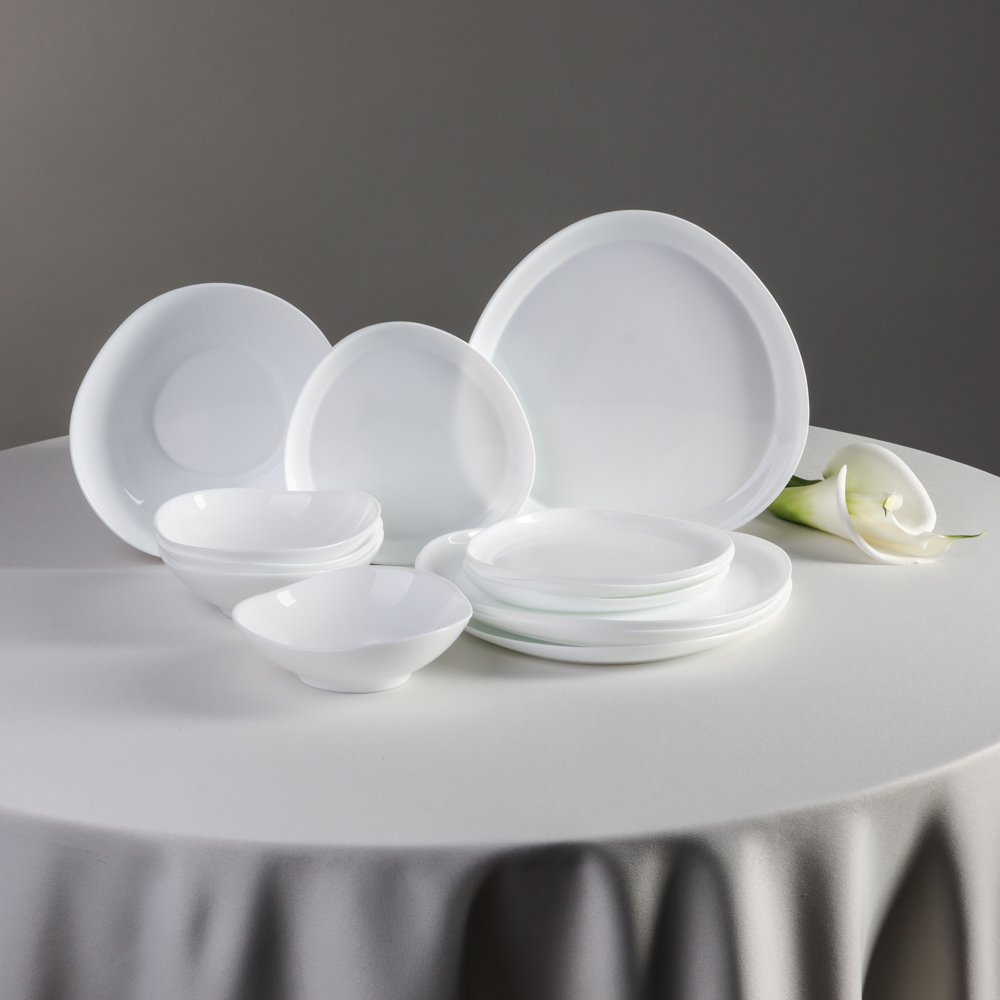 Набор столовой посуды MILLIMI, состоящий из 13 предметов, выполнен из белоснежного опалового стекла и удивляет необычной треугольной формой, которая придаст вашему столу стильный и современный вид. Комплект включает в себя 4 обеденные тарелки диаметром 24 см, идеально подходящие для подачи основных блюд, 4 десертные тарелки диаметром 17 см для закусок и сладостей, 4 глубокие тарелки диаметром 15 см, которые отлично удерживают тепло супов и горячих блюд, а также салатник диаметром 19 см для эффектной подачи салатов, фруктов или гарниров. Благодаря прочному опаловому стеклу набор устойчив к перепадам температур, что делает его безопасным для использования в микроволновой печи и посудомоечной машине. Легкий в уходе, изящный и прочный, набор MILLIMI — идеальный выбор для повседневной сервировки и особых случаев, а также станет прекрасным подарком для друзей и близких.