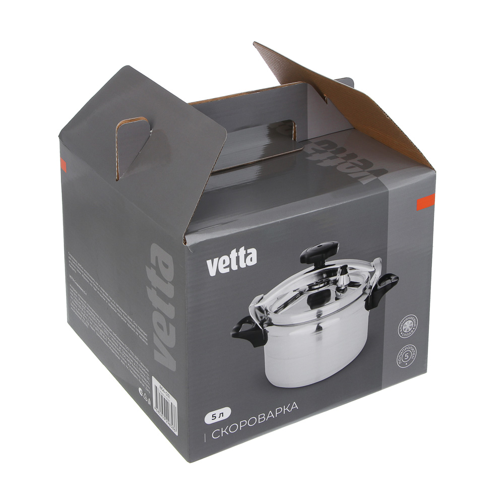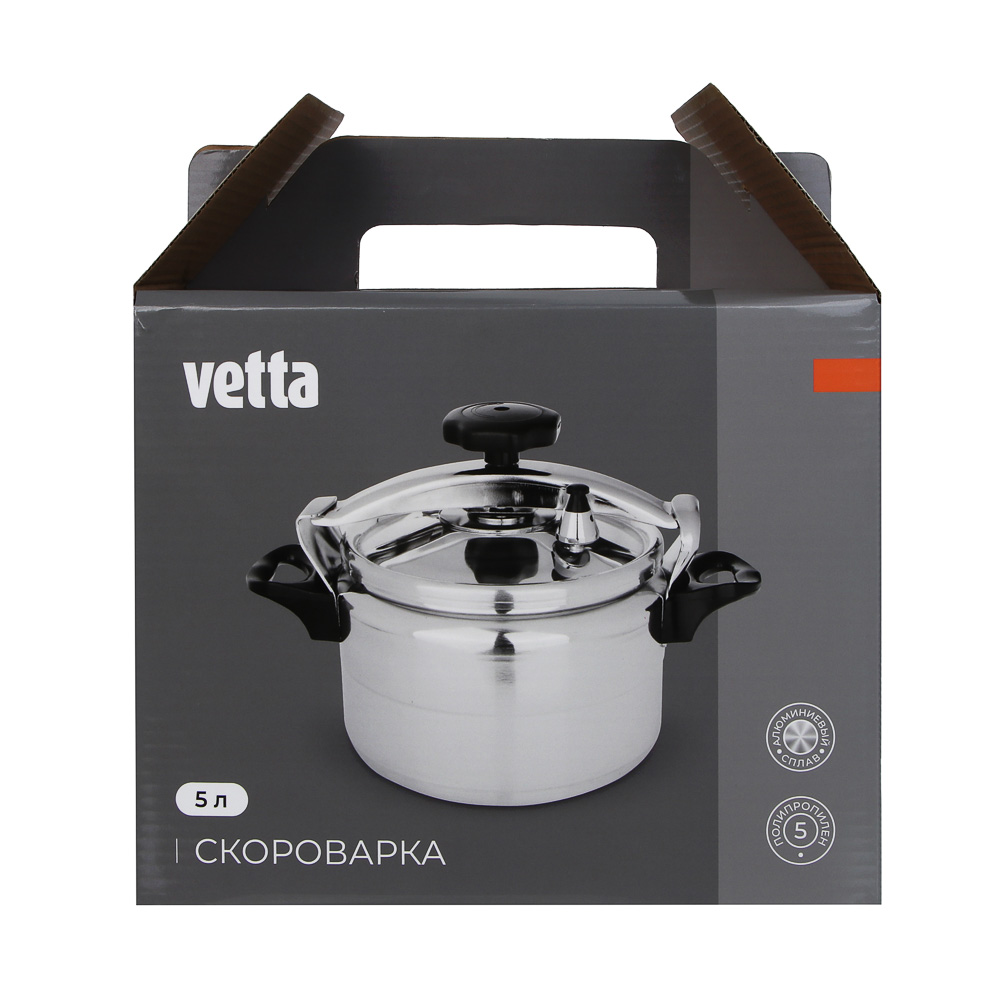Скороварку Vetta очень легко использовать. Даже на медленном огне блюда тушатся быстрее, чем в обычной кастрюле. Теперь вы можете готовить вкусные и полезные обеды для всей семьи быстрее, а сэкономленное время посвящать досугу. В скороварке картофель варится всего 15 минут, когда в классической посуде целых 30. Если хотите дольше сохранять блюдо теплым, закройте емкость крышкой и оставьте на плите. Благодаря 100% герметичности тепло не испарится. 7 причин купить скороварки Vetta:• сверхпрочный алюминий• оптимальное распределение тепла• герметичная крышка• готовка без выкипания• сохранение природного вкуса ингредиентов• даже если семья опоздала на ужин, еда долгое время остается теплой• &n