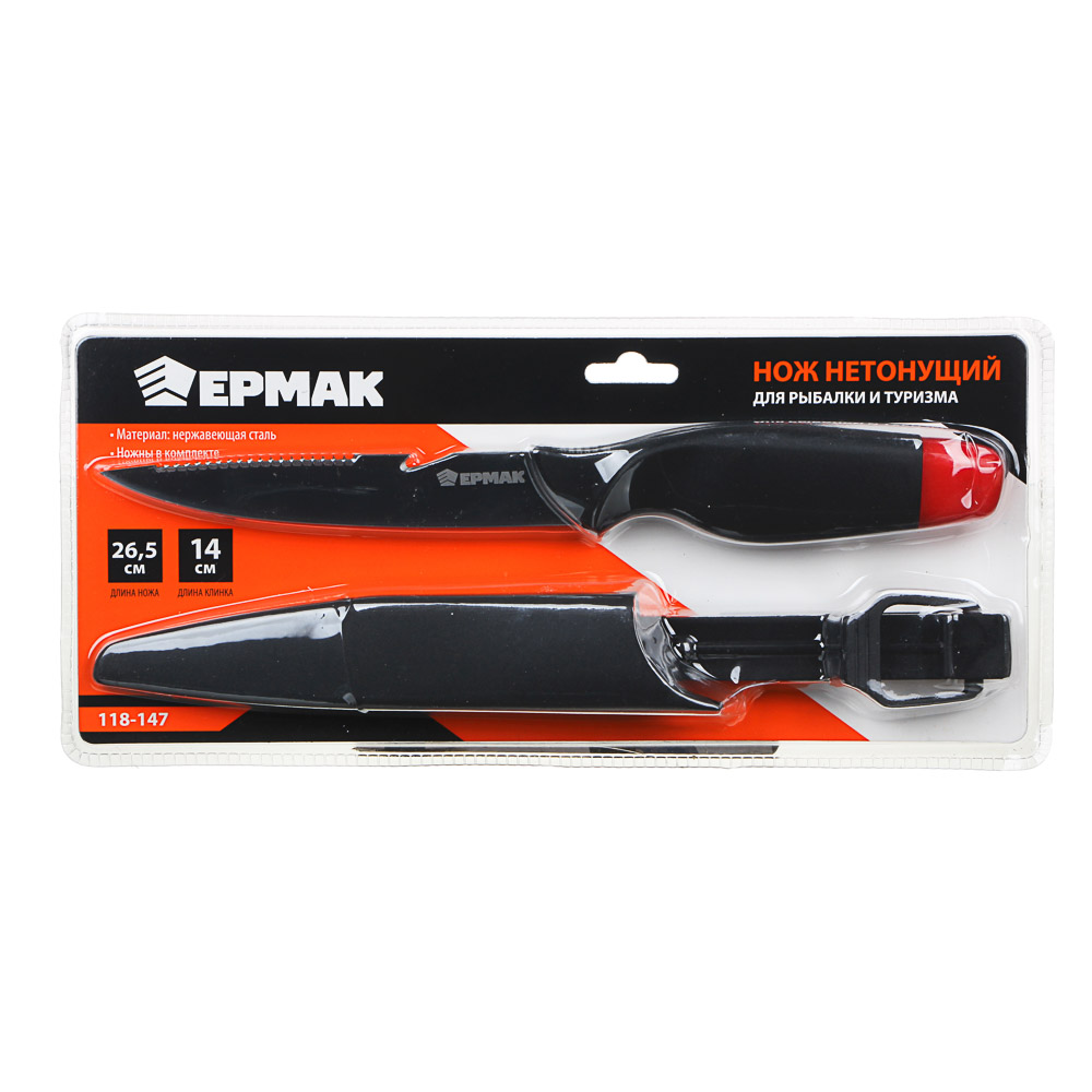 ЕРМАК Нож нетонущий для рыбалки и туризма c ножнами, 26,5см, нерж. сталь, пластик