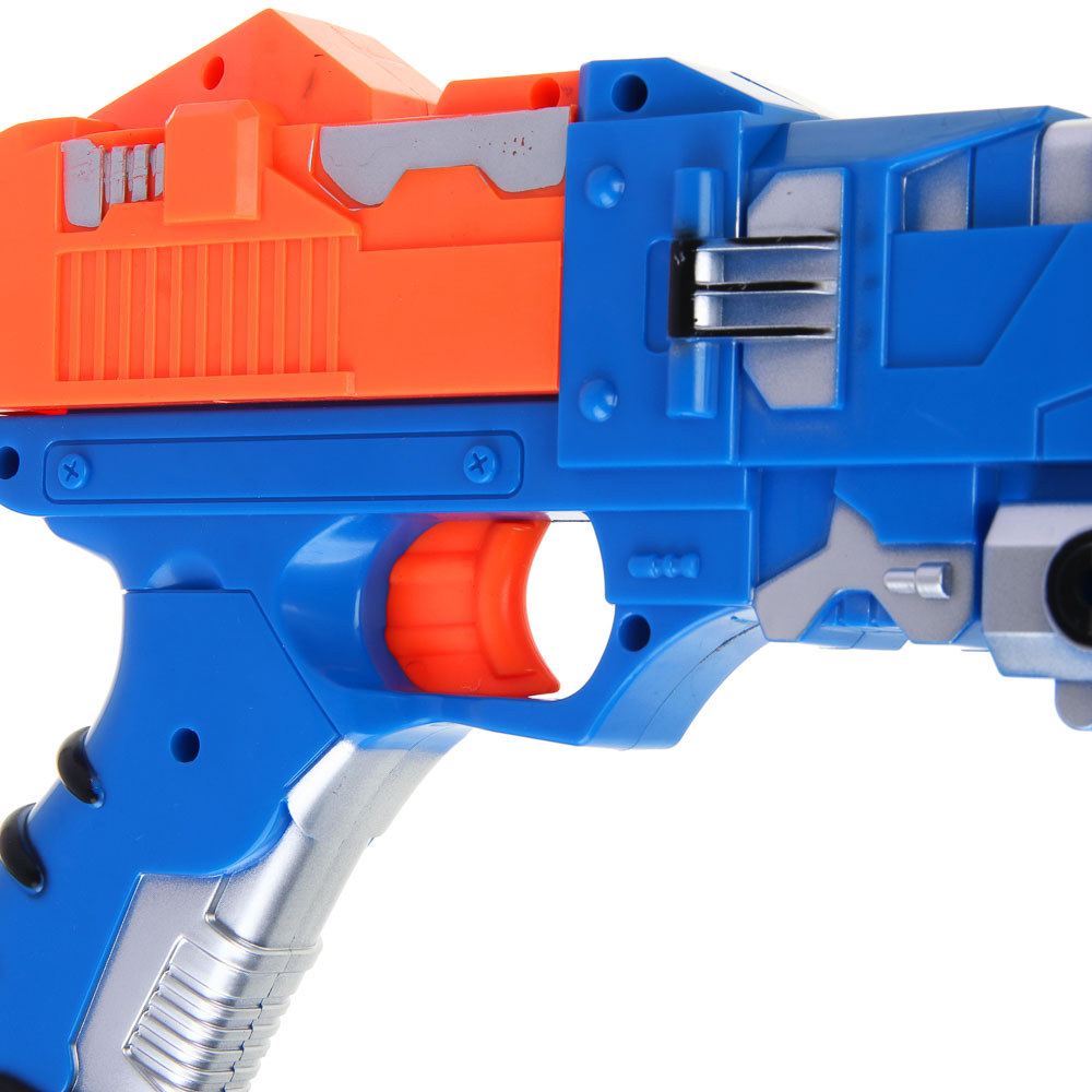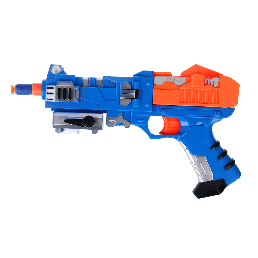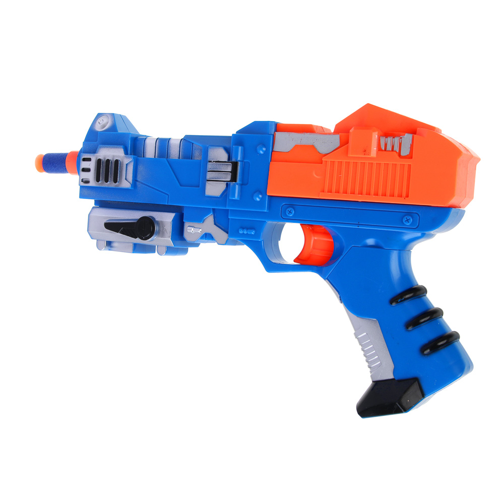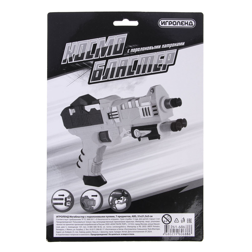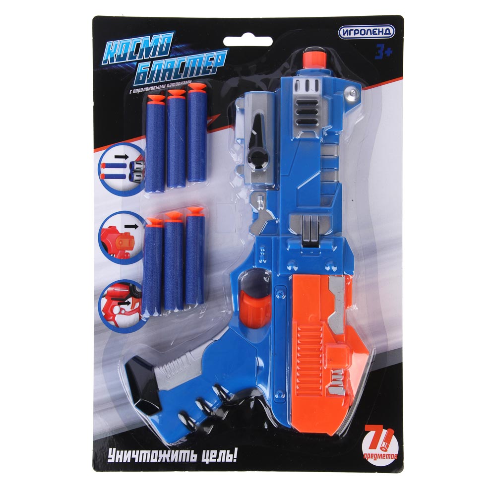 Противники трепещите! Ведь это игрушечное оружие с набором мягких пуль заставит вас искать укрытие. Принцип действия устройства простой: вставляете поролоновые патроны в специальные отверстия и нажимаете на курок. Пусть бережется тот, кто встретится на пути юного воина. Игрушка предназначена для детей от 3 лет.5 причин купить бластер «Игроленд»:• полностью собранная и готовая к запуску модель,• в комплекте 6 мягких патронов,• поролоновые пули — 100% безопасны, не причиняют боли, не разбивают предметы в доме,• удобное использование — зарядил и стреляй,• материал бластера — высокопрочный пластик.