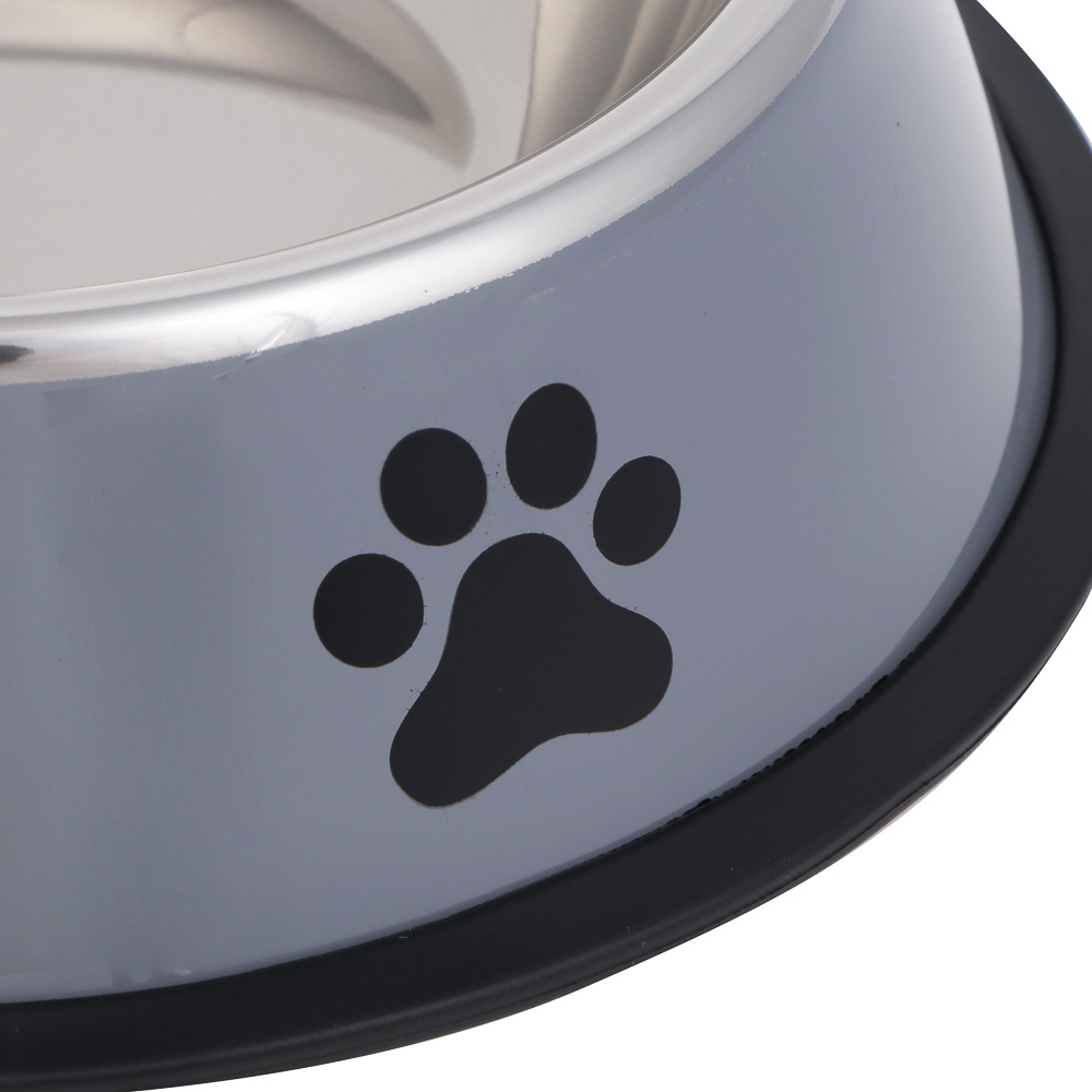 Миска для домашних животных VETTA из нержавеющей стали, 22х6 см, объем 500 мл – это посуда для собак любых пород и возрастов. Может использоваться как для корма, так и для воды. Имеет устойчивое основание, не опрокидывается. Качественная нержавеющая сталь не подвержена коррозии, не накапливает запахи и микробы, что делает изделие абсолютно безопасным для питомца. Не боится падений и механических воздействий. Привлекательный дизайн с рисунком в виде лапок в белом или сером цвете впишется в любой интерьер.