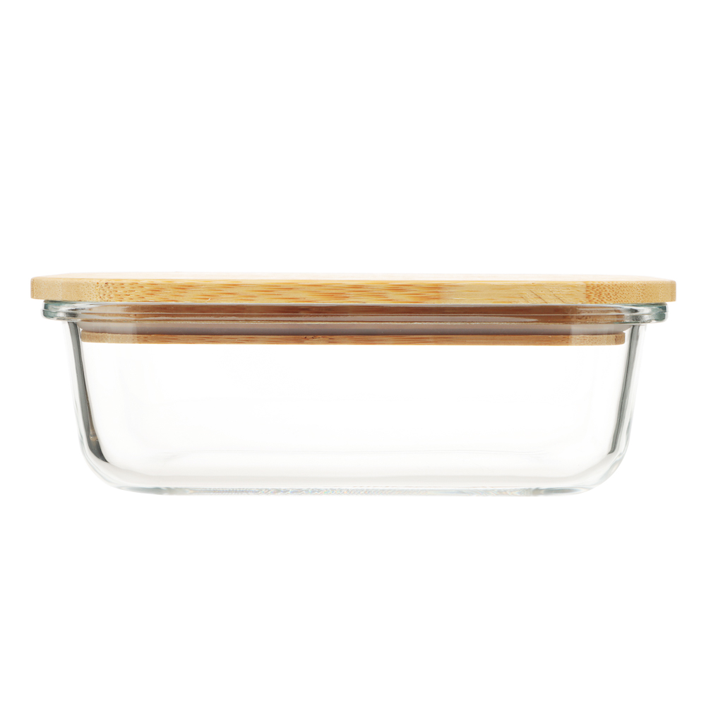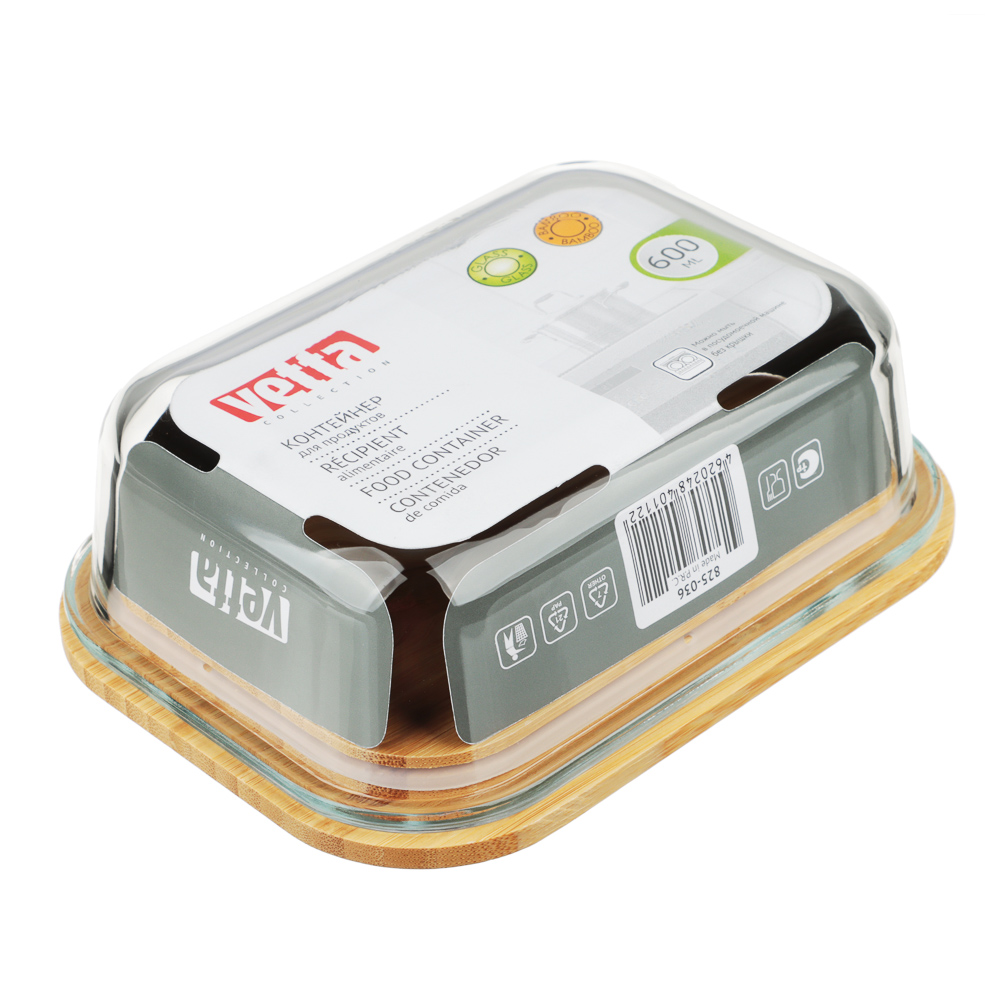 Контейнер VETTA объёмом 600 мл — идеальный выбор для хранения продуктов и блюд. Изготовленный из жаропрочного стекла, он позволяет безопасно использовать контейнер в микроволновой печи и холодильнике. Прочная крышка из бамбука обеспечивает надежное закрытие и сохранение свежести пищи. Прямоугольная форма контейнера оптимальна для удобного хранения различных продуктов, а стильный дизайн с натуральным элементом добавит элегантности на вашем кухонном столе.