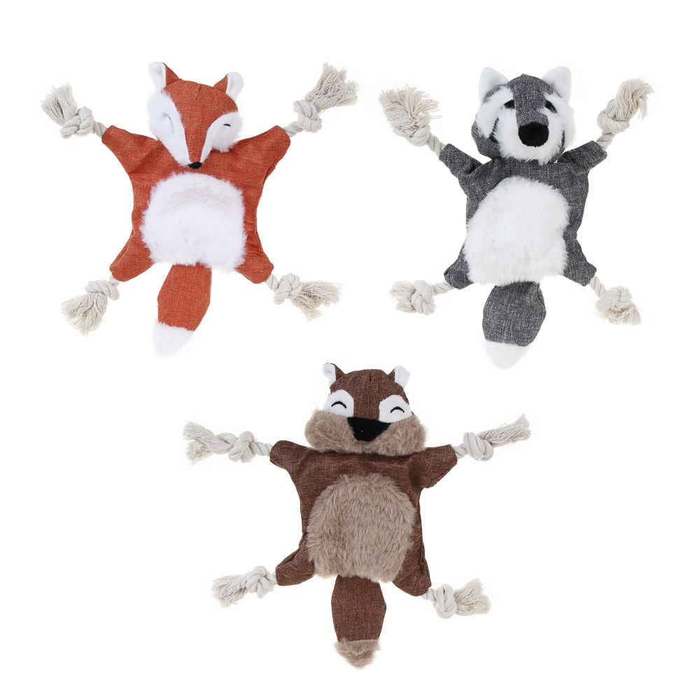 Игрушка для домашних животных от бренда VETTA изготовлена из полиэстера и представлена в ассортименте в виде лесных животных: лисы, енота и белки. Туловище игрушки выполнено без наполнителя, что делает её лёгкой и безопасной для игры. Встроенные шуршащие элементы и пищалка привлекают внимание питомца и стимулируют его интерес. Игрушка идеально подходит для активных игр, помогая развивать инстинкты и поддерживать физическую активность вашего любимца.