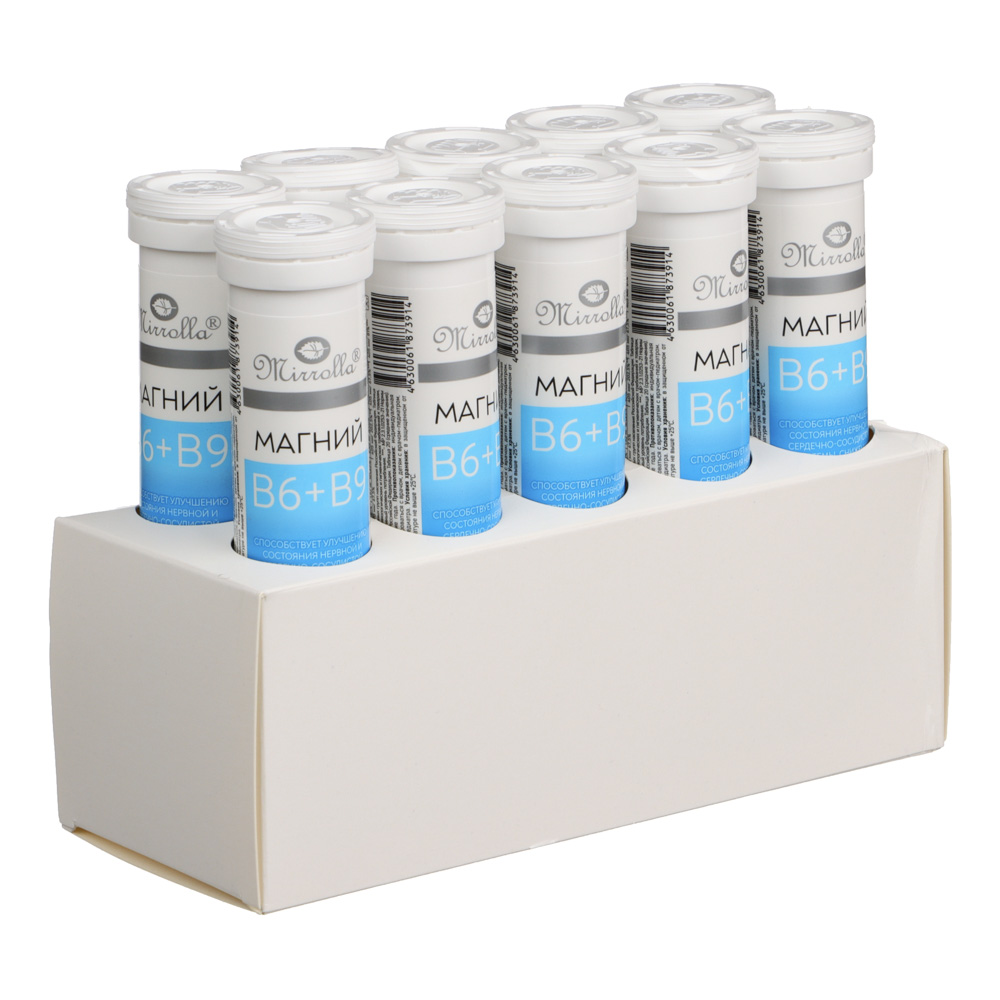 Магний B6 + B9 «Мирролла» – добавка, которая способствует улучшению состояния нервной и сердечно-сосудистой системы. Способствует уменьшению уровня стресса за счет снижения возбудимости нервной системы. Совместный прием магния с витамином B6 улучшает всасываемость магния из ЖКТ. Форма выпуска – шипучие таблетки для растворения в воде. 20 таблеток в упаковке.