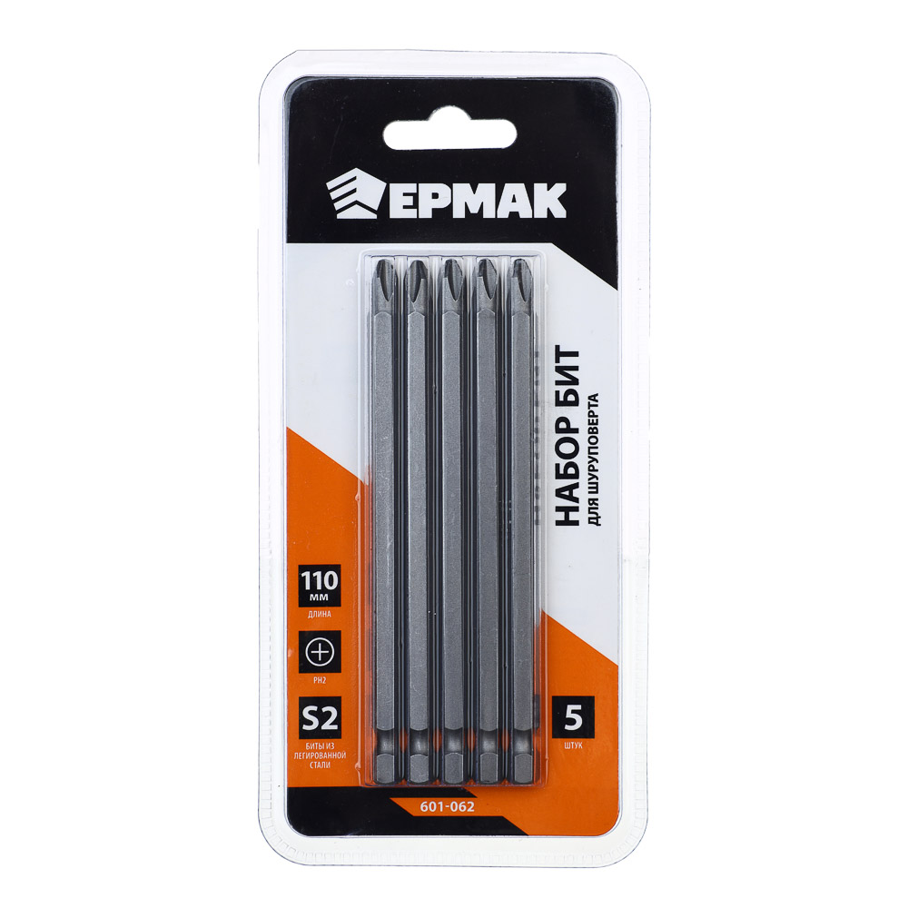 Биты для шуруповерта ЕРМАК PH2х110 – это набор, состоящий из 5 одинаковых удлиненных бит в блистере. Применяются при сборке и разборке мебели, а также для других работ по монтажу и демонтажу резьбовых соединений с шлицем PH2. Изготовлены из закаленной легированной стали S2, которая значительно увеличивает ресурс службы изделия и обладает высоким запасом прочности.