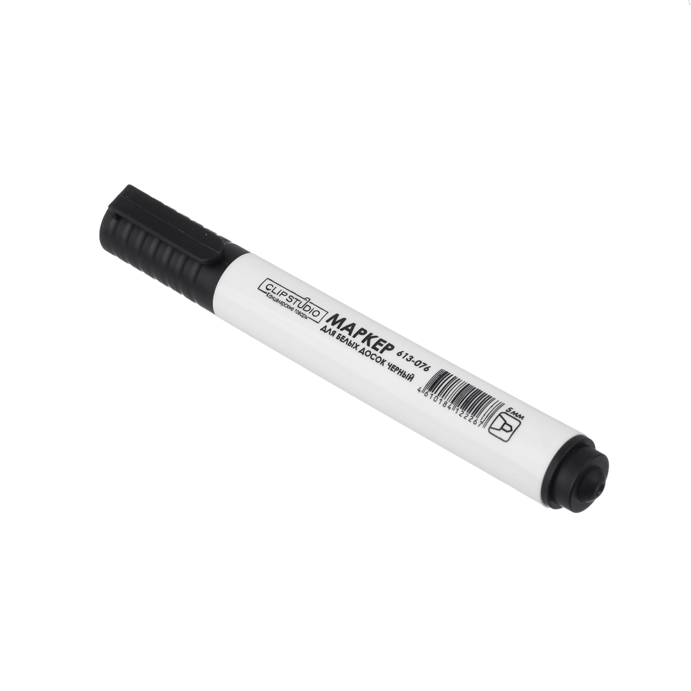 Маркер ClipStudio для белой доски, черный. Чернила стираются с магнитно-маркерной доски сухой тряпочкой. Подходит для письма на любой гладкой поверхности. Светостойкие чернила, на спиртовой основе. Пулевидный наконечник, толщина линии 5 мм. Хранить в горизонтальном положении.