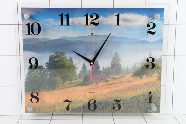 Размер (ДхВхШ) 460х360х50 мм Материал ДВП, стекло, пластмасса, металл Батарейка работает от 1 батарейки АА "пальчиковая", в комплект не входит Часовой механизм С плавным ходом