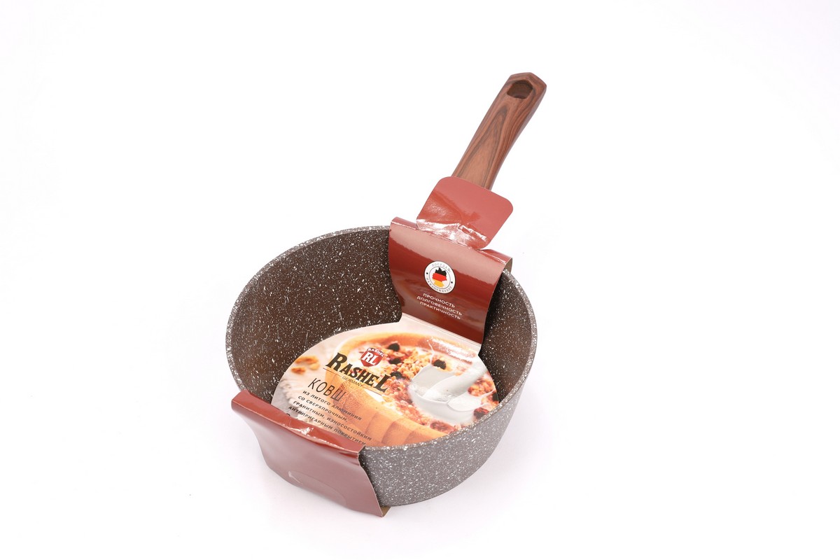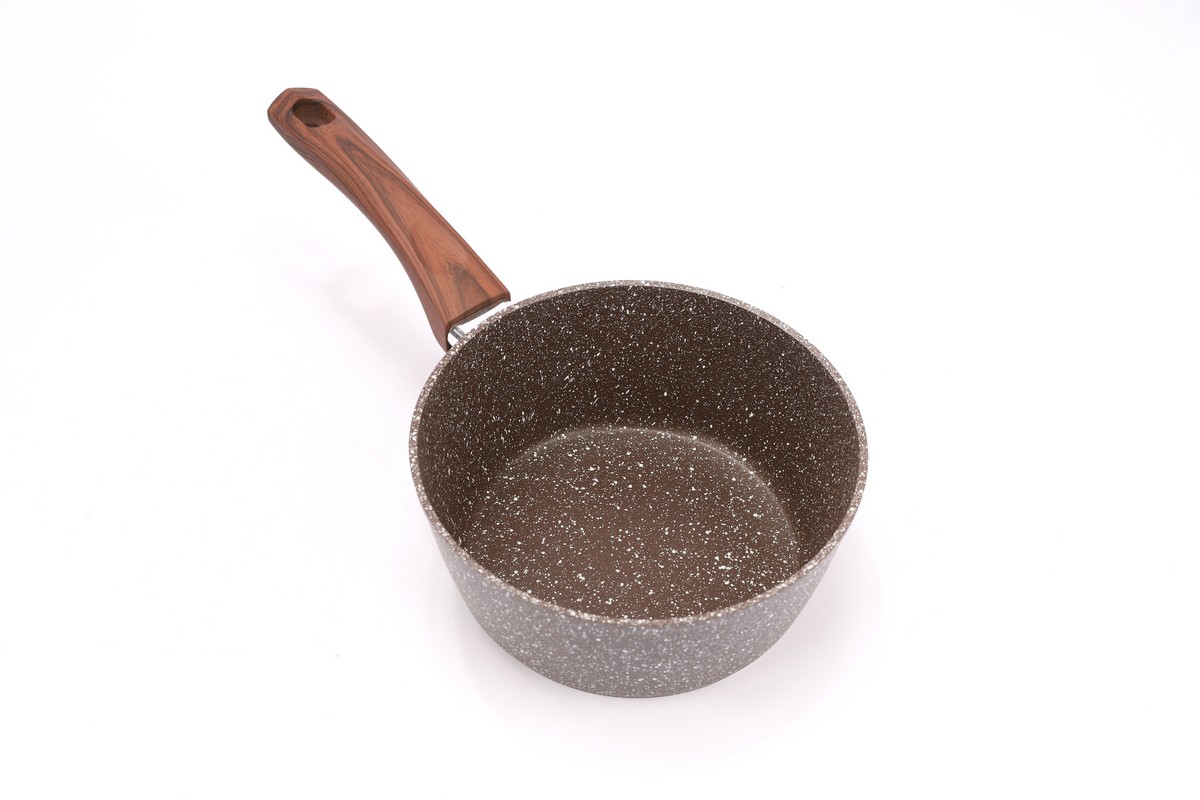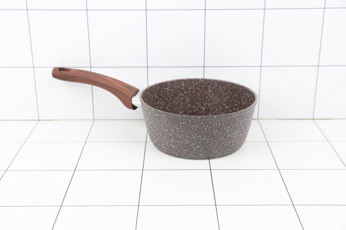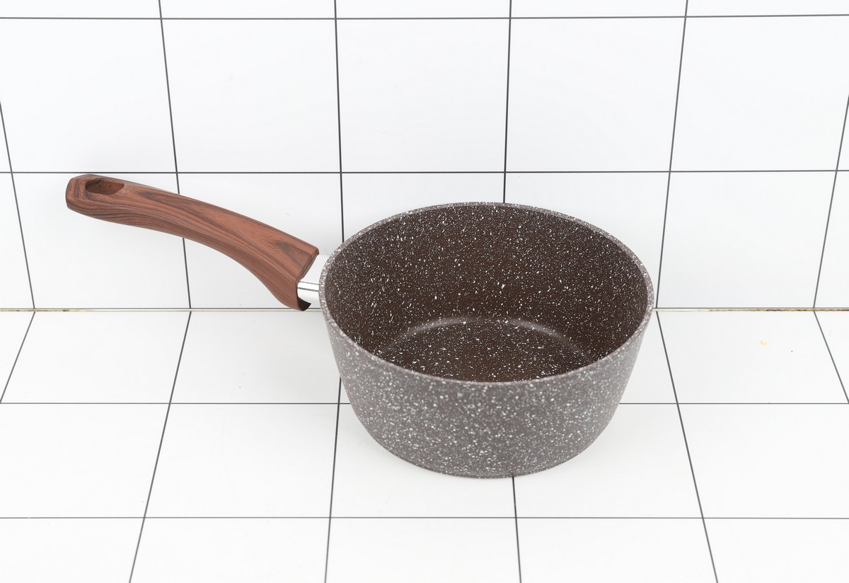 Ковш а/п литой 1,5 л с индукционным дном, d=18 см, цвет: коричневый гранит - толщина стенок 4 мм, толщина дна 6 мм; - Материал изделия: пищевой алюминий; - Ручка с покрытием Soft Touch, имитирующее поверхность дерева; - Внутреннее и внешнее сверхпрочное, износостойкое, гранитно-каменное атипригарное покрытие""ТИТАН&ГРАНИТ""; - Подходит для всех видов плит;