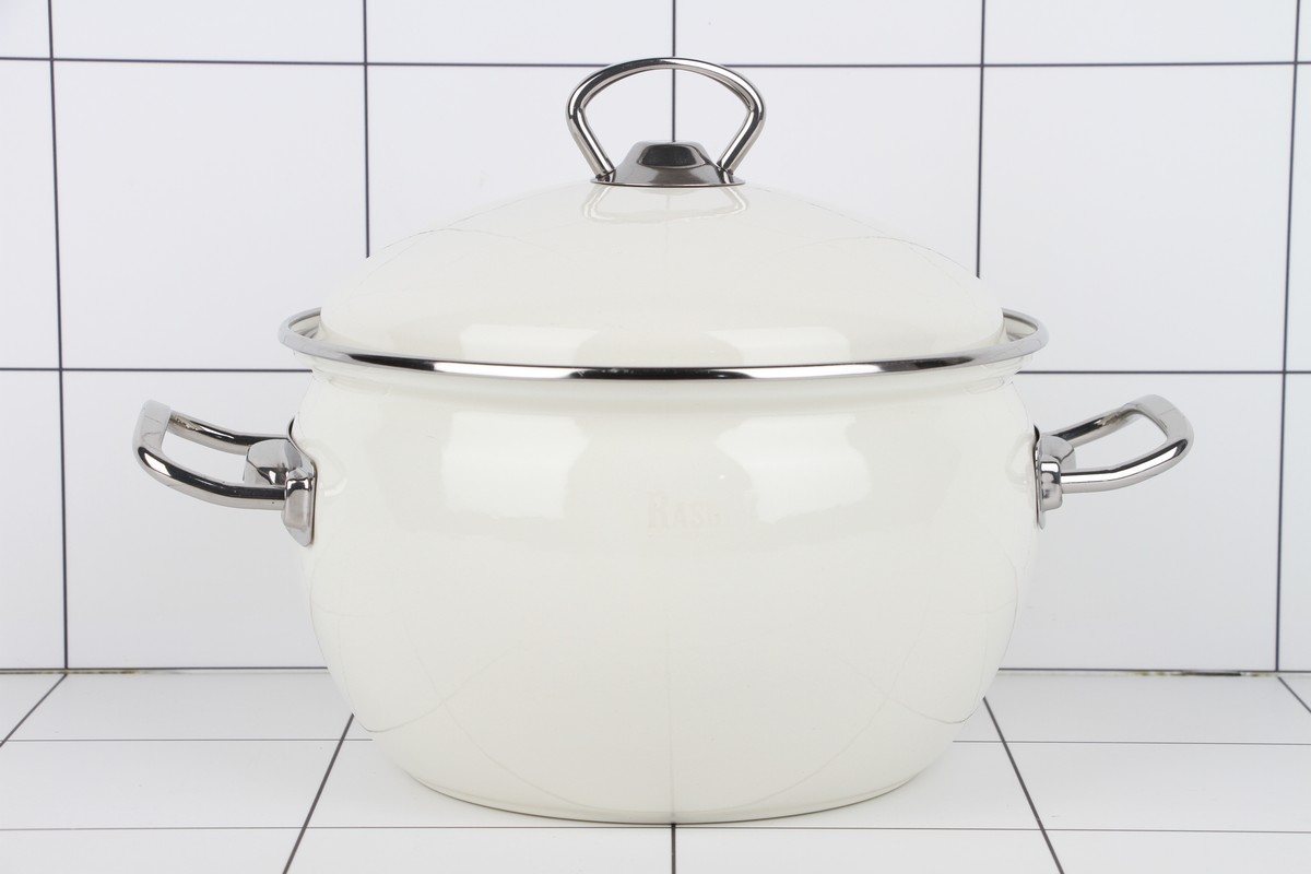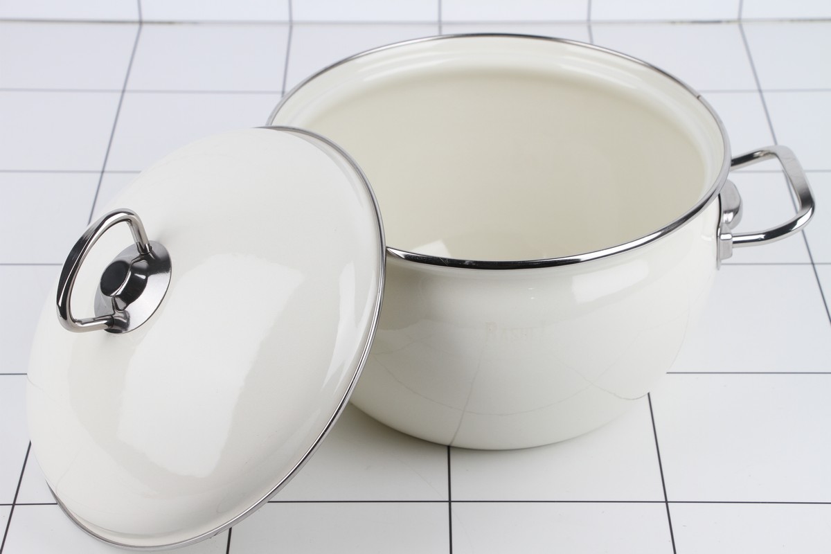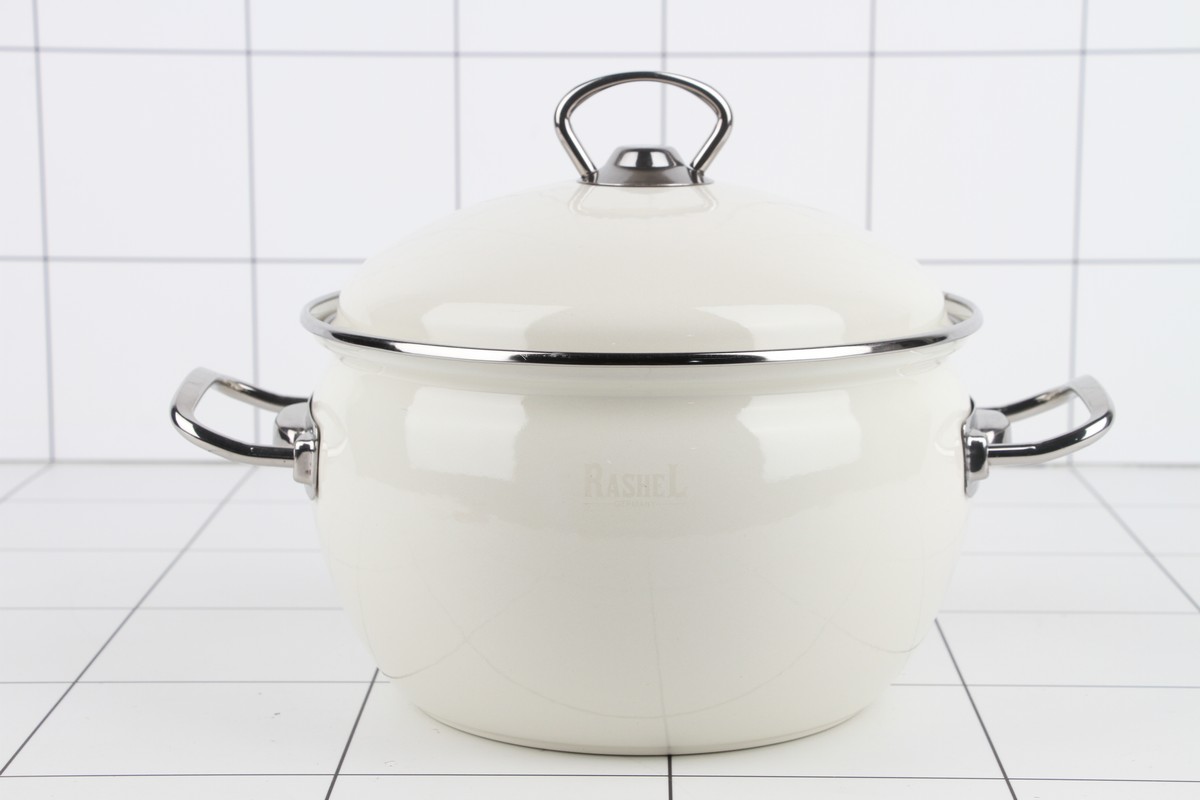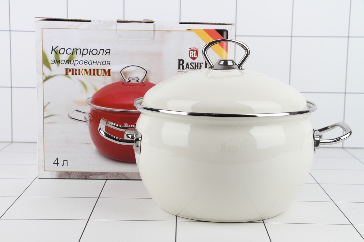 Эмалированные кастрюли серии PREMIUM Кастрюля со стеклянной крышкой Эмалированная кастрюля торговой марки "RASHEL" выполнена из стали высокого качества с глянцевым эмалированным покрытием внутри и снаружи. Эмаль устойчива к пищевым кислотам, не вступает во взаимодействие с продуктами и не искажает их вкусовые качества, не вызывает аллергию и надёжно защищает пищу от контакта с металлом. Кроме того, такое покрытие долговечно, оно устойчиво к механическому воздействию, не царапается, а стальная основа практически не подвержена механической деформации, благодаря чему срок эксплуатации увеличивается. Посуда подходит для тепловой обработки пищевых продуктов, для приготовления холодных блюд, для хранения и переноски пищевых продуктов. Эргономичный дизайн и функциональность позволят вам наслаждаться процессом приготовления любимых и полезных для здоровья блюд. Подходит для всех видов плит!