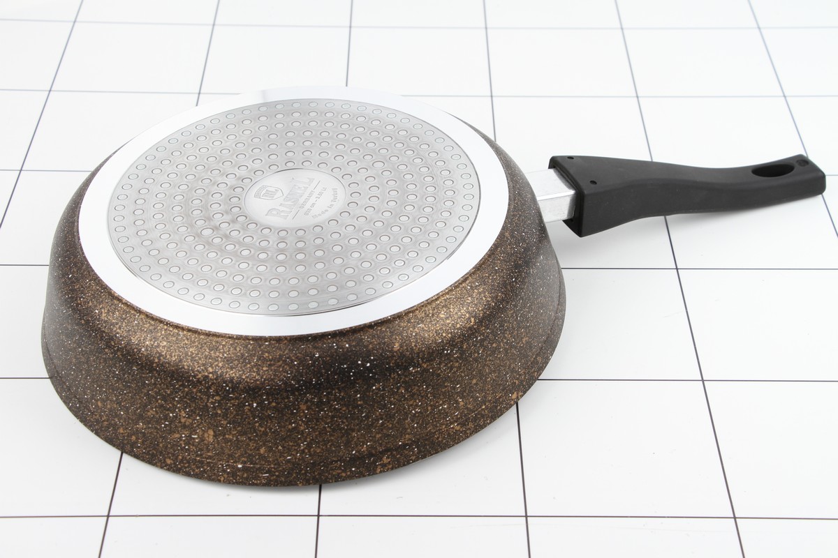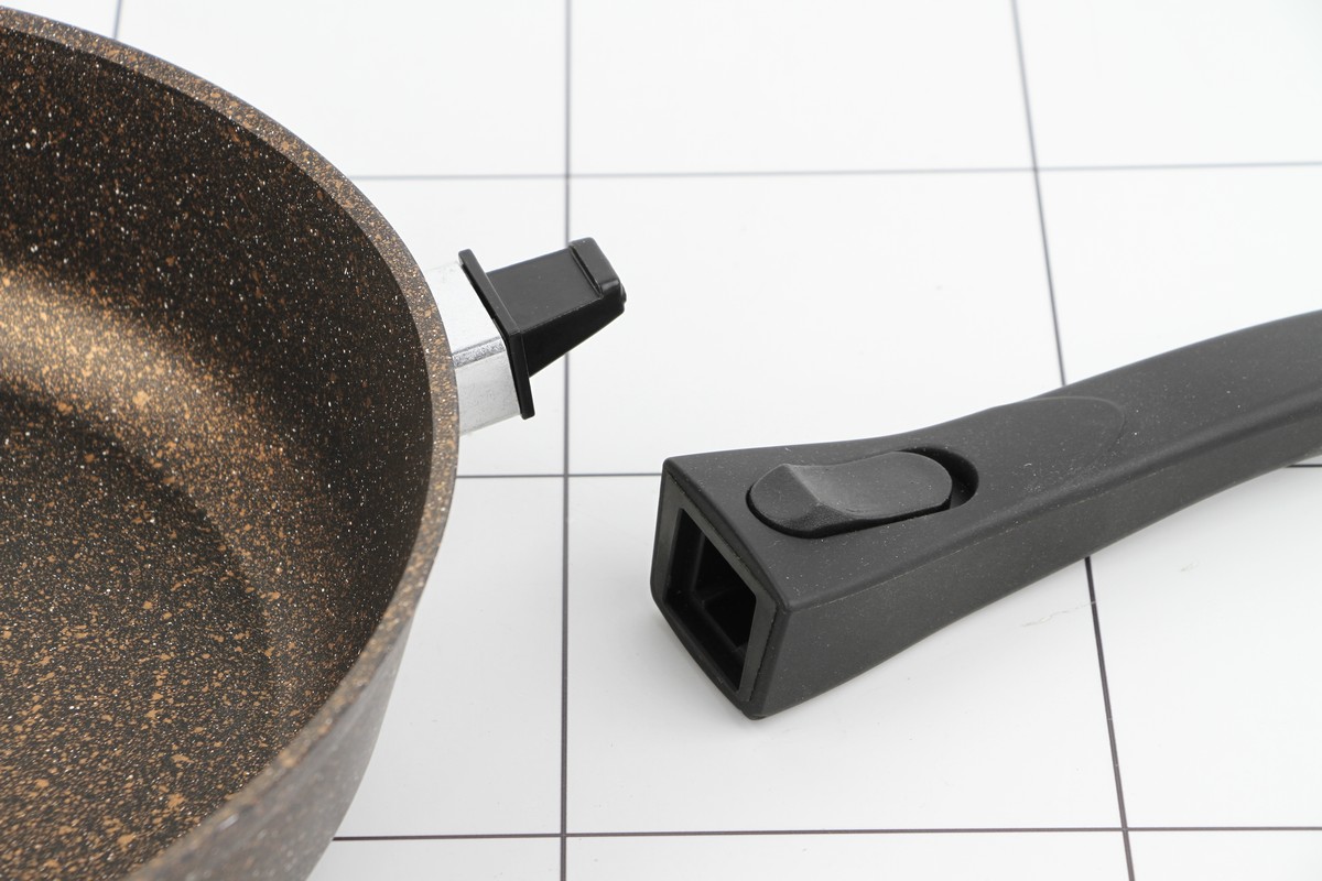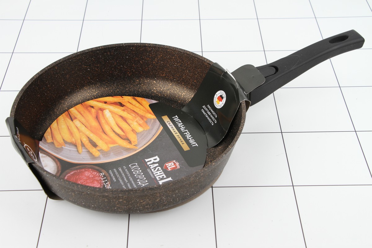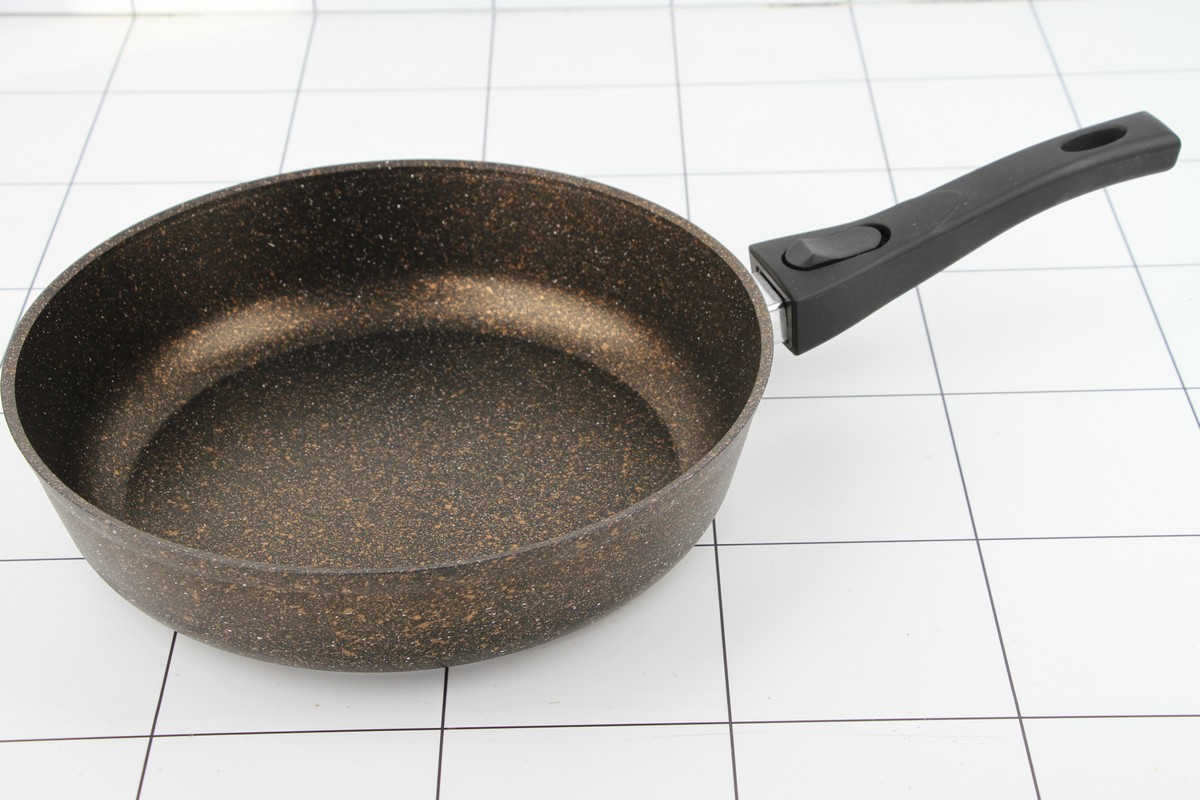 Сковорода а/п литая 28 см с индукционным дном, съём/ручка (цвет: бронзовый) - Подходит для всех видов плит; - Высота борта h=7,1 см, d=28 см, толщина стенок 4 мм, толщина дна 6 мм; - Съёмная ручка; - Внутреннее и вневшнее сверхпрочное, износостойкое, гранитное антипригарное покрытие"ТИТАН&ГРАНИТ".