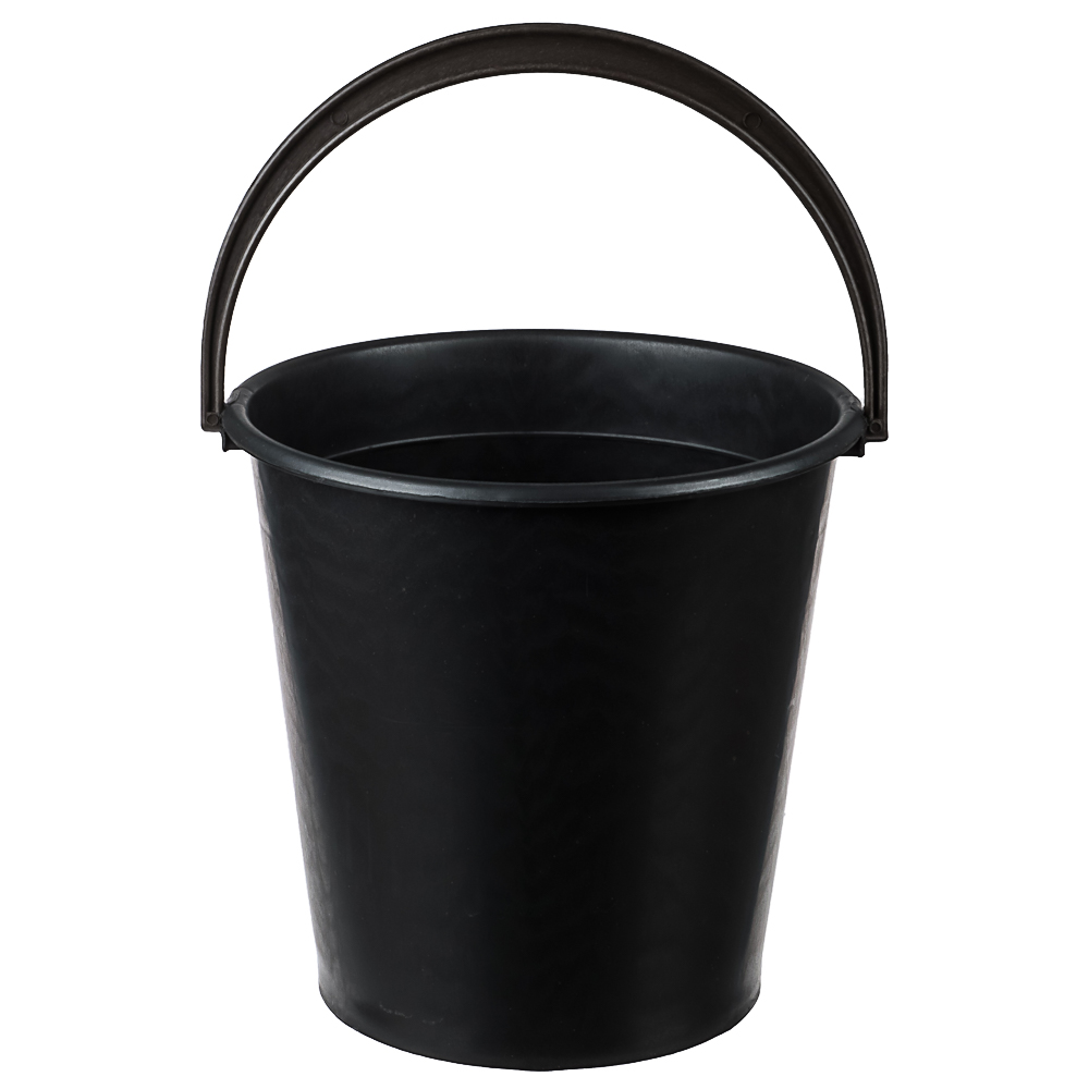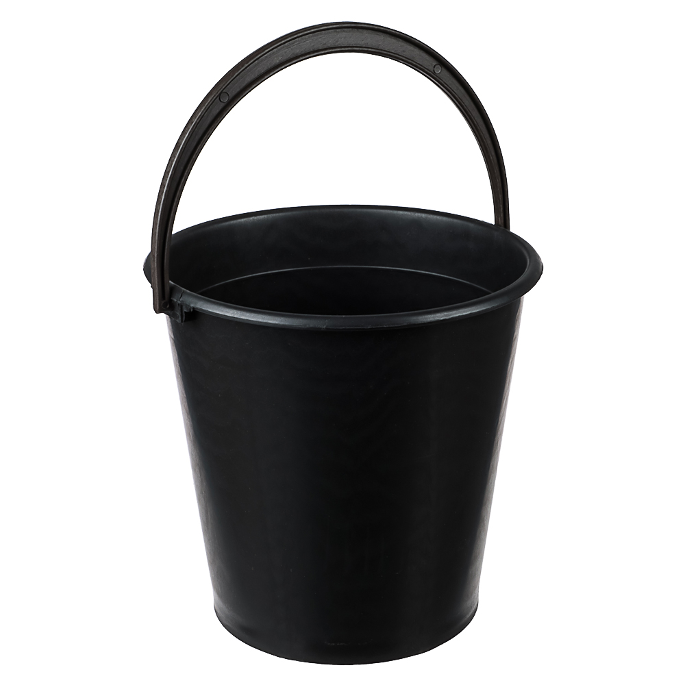 Пластмассовое хозяйственное ведро объёмом 10 литров и чёрного цвета оснащено удобной пластиковой ручкой для переноски. Оно устойчиво и изготовлено из прочного пластика, что обеспечивает долгий срок службы. Ведро идеально подходит для использования в быту, на даче или в саду.
