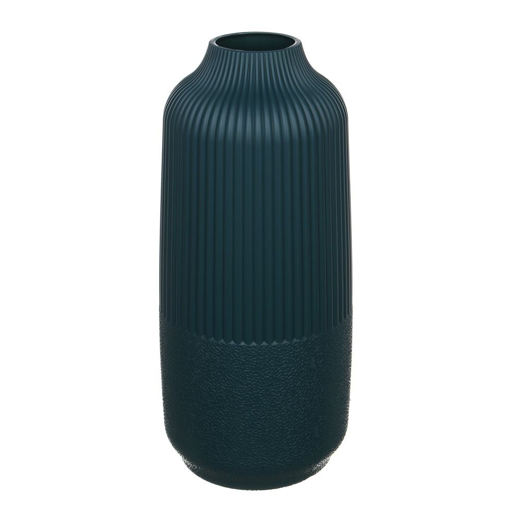 Стильная ваза 11х30,5х6,5 см вытянутой формы станет изысканным акцентом в интерьере. Верхняя часть украшена вертикальными рельефными линиями, создающими современный минималистичный дизайн, а нижняя — с фактурным покрытием, имитирующим камень. Материал — прочный пластик, легкий и практичный в уходе. Идеально подойдет для сухоцветов, декоративных композиций или как самостоятельный элемент декора. Компактные размеры позволяют разместить вазу на полке, подоконнике или журнальном столике. Элегантное решение для дома, офиса или подарка.