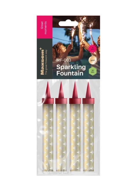 Праздничный фейерверк для торта от надёжного производителя ТМ «МАКСЭМ» превратит обычный момент задувания свечей в яркое и запоминающееся событие! Набор из четырёх свечей-фонтанов станет настоящим украшением любого торжества и подарит гостям незабываемые впечатления. Изысканный аксессуар высотой 10-12,5 сантиметров с удобной подставкой идеально подходит для любого торта. Золотые искры создают завораживающее световое шоу продолжительностью 30 секунд, наполняя праздник атмосферой волшебства и радости. Высокое качество исполнения гарантирует безопасное и надёжное использование свечей в помещении. Специальная конструкция обеспечивает стабильную работу и эффектное представление, которое никого не оставит равнодушным.