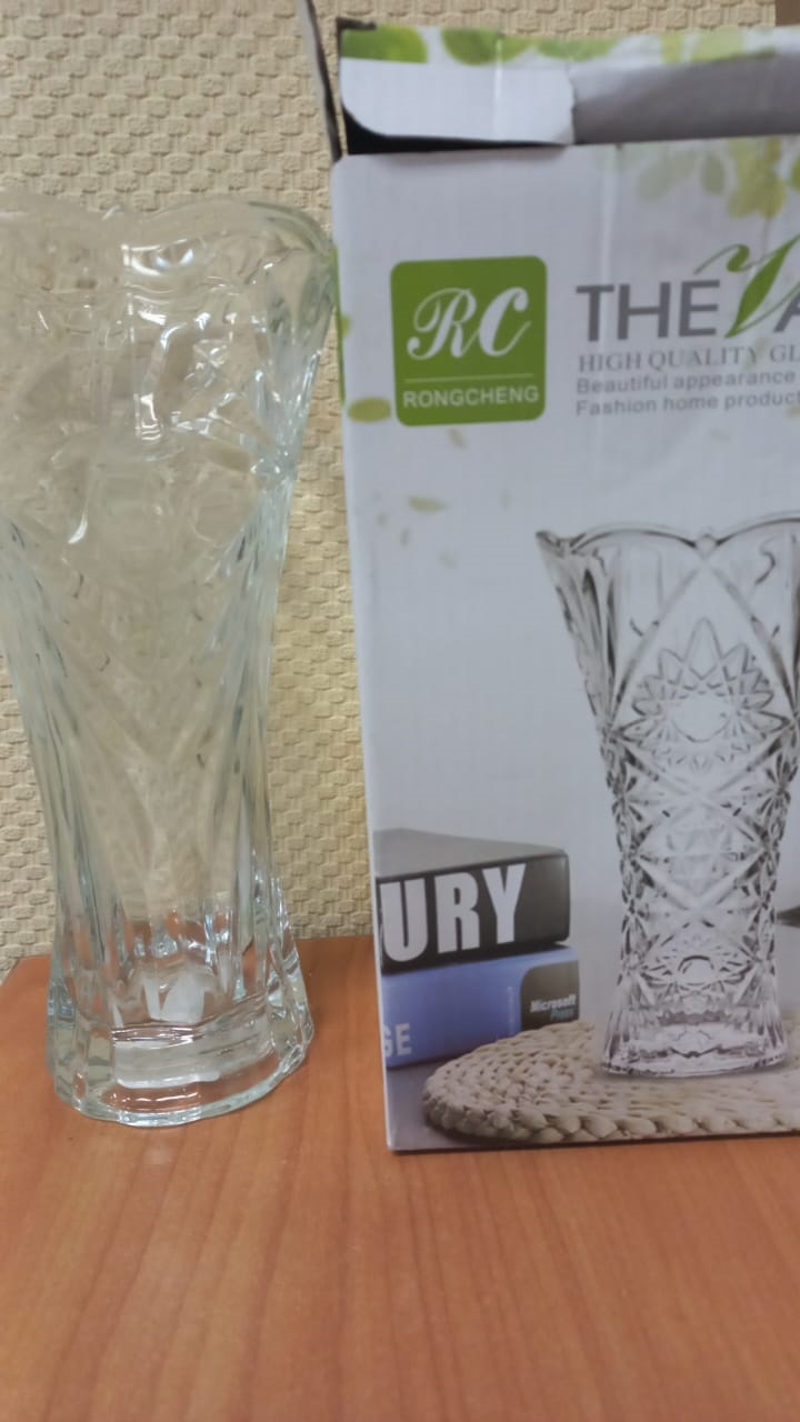 Ваза для цветов стеклянная, 24 см - Высота 24 см, размер 13 см - Цвет: прозрачный - Материал: прочное узорное стекло - Индивидуальная подарочная упаковка