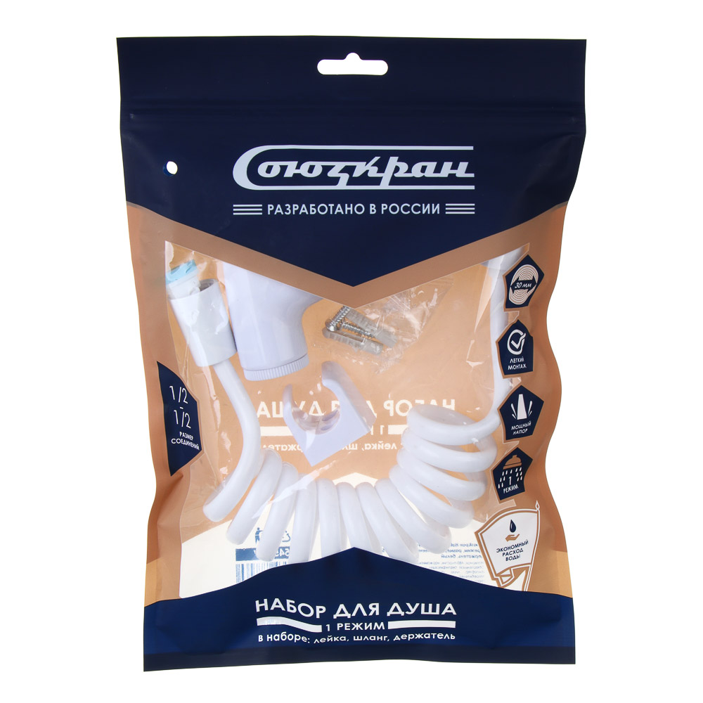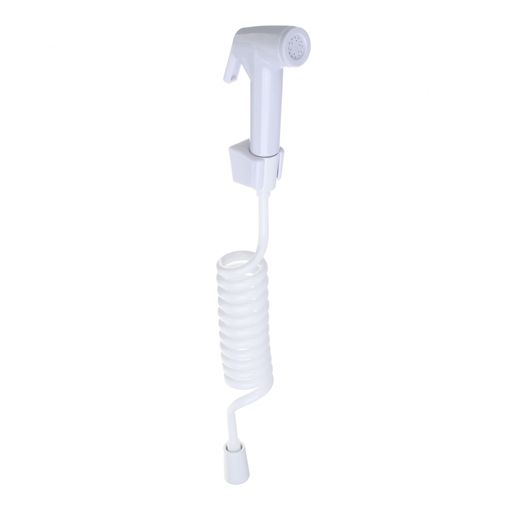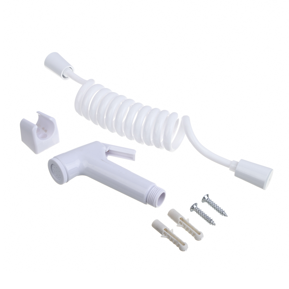 Функциональный комплект для организации удобного гигиенического душа. В набор входит компактная пластиковая лейка диаметром 30 мм с фиксированным режимом подачи воды. Гибкий шланг длиной от 30 до 150 см позволяет регулировать расстояние для комфортного использования. Настенный держатель с креплением обеспечивает удобное размещение лейки. Все элементы выполнены в белом цвете из прочного влагостойкого пластика. Комплект предназначен для простого монтажа без специального инструмента. В поставку включены все необходимые крепежные элементы и уплотнители для герметичного соединения. Универсальное решение для оснащения биде или организации дополнительного гигиенического душа.