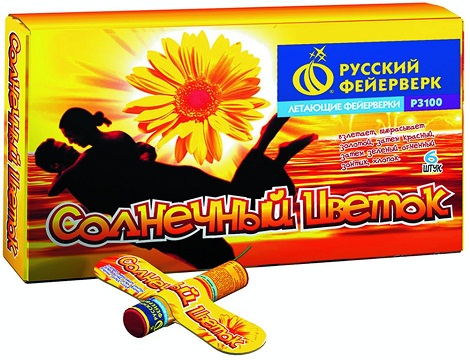 "Солнечный цветок" - это достаточно крупный летающий фейерверк, который интересен тем, что меняет цвет пламени во время полета! Взлетая в небо по крутой дуге, "Солнечный цветок" оставляет яркий инверсионный след из огненных искр - сначала золотых, затем красных, и под конец зеленых. Такой сценарий напоминает многоступенчатую ракету, которая меняет топливо и принцип работы в различных слоях атмосферы! Продолжительность полета дольше, чем у большинства других "летающих фейерверков". В упаковке - 6 "цветов", цена указана за упаковку. Список эффектов: 1. Взлетает, выбрасывает золотой, красный, зеленый огненный зонтик, хлопает.