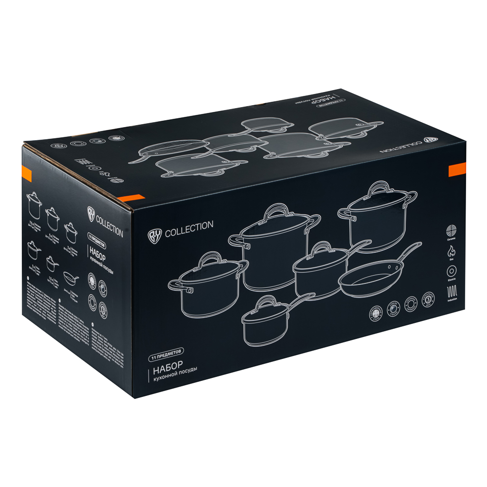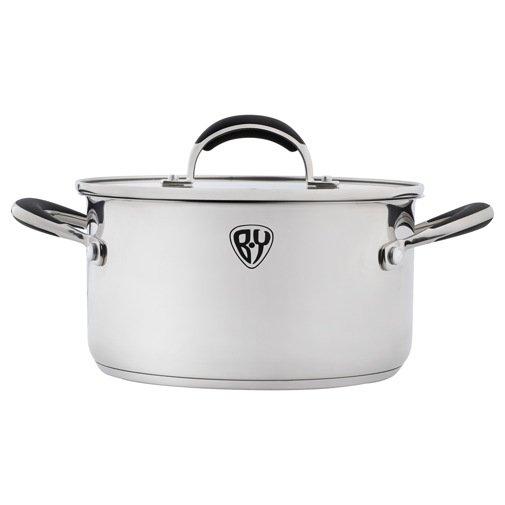 BY COLLECTION Harp представляет стильный набор кухонной посуды из 11 предметов, который станет незаменимым помощником на любой кухне. Комплект из высококачественной нержавеющей стали включает три кастрюли разного объема (7,5 л, 5 л и 3 л) с крышками, два удобных ковша (3 л и 1,5 л) с крышками и практичную сковороду диаметром 24 см. Особенность набора - эргономичные силиконовые ручки, которые не нагреваются во время готовки, обеспечивая безопасность и комфорт. Многослойное термораспределяющее дно гарантирует быстрый и равномерный нагрев, экономя ваше время и энергию. Посуда подходит для всех типов плит, включая индукционные, и сохраняет безупречный вид благодаря зеркальной полировке поверхности. Лаконичный дизайн в сочетании с продуманной функциональностью делает этот набор идеальным выбором для современной кухни, где важны и эстетика, и практичность.