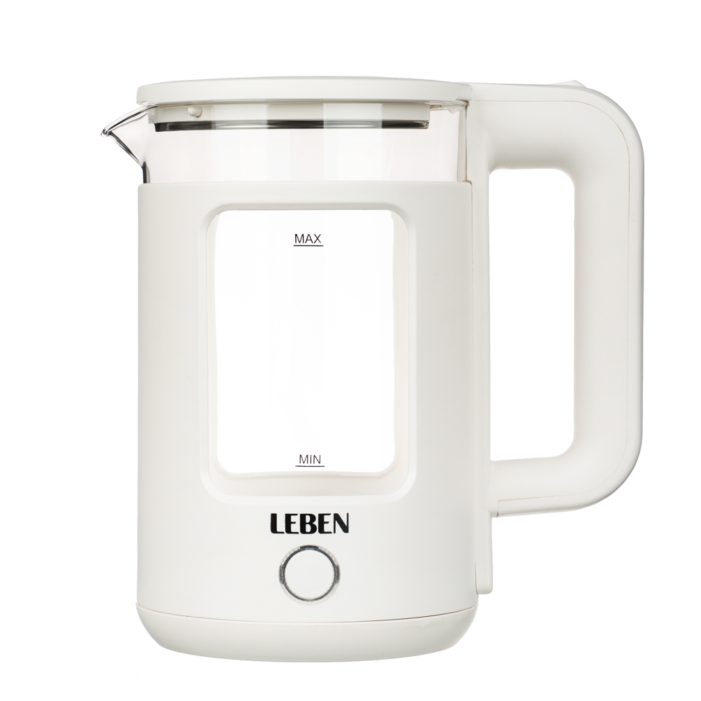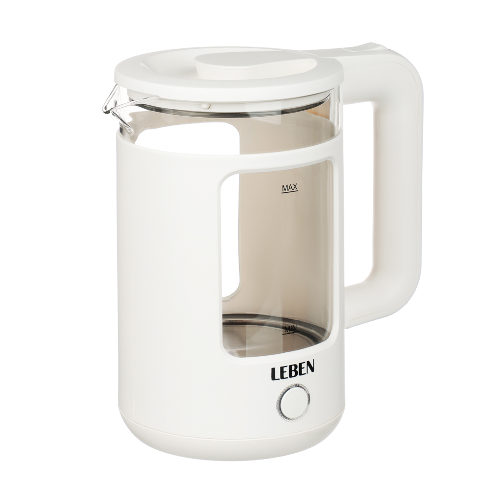 Электрический чайник LEBEN представляет собой стильное и функциональное решение для вашей кухни. Элегантное сочетание прозрачного стекла и белого пластика создает современный дизайн, который гармонично впишется в любой интерьер. Объем 1,8 литра идеально подходит для семейного использования, а мощность 1850 Вт обеспечивает быстрое закипание воды. Одной из главных особенностей модели является возможность поворота корпуса на 360 градусов, что делает использование чайника максимально удобным с любой стороны. Световая индикация гармонично дополняет внешний вид прибора и сообщает о температуре воды.