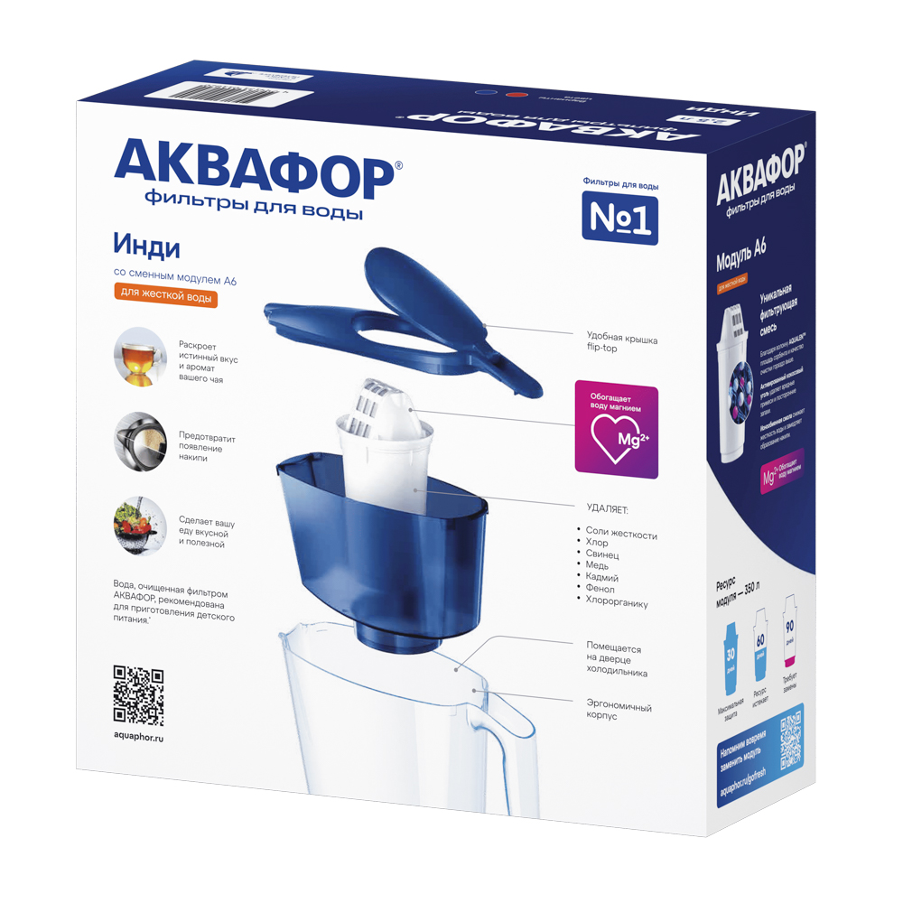 Если вы устали от жёсткой воды, которая портит вкус вашего чая и кофе, а также приводит к образованию накипи на посуде, то фильтр-кувшин АКВАФОР Инди А6 – это именно то, что вам нужно! Благодаря инновационному модулю Аб, разработанному специально для жёсткой воды, этот фильтр удаляет соли жёсткости, хлор, свинец, медь, кадмий, фенол и хлорорганику, делая вашу воду чистой и безопасной для питья. Фильтр-кувшин АКВАФОР Инди А6 имеет удобную крышку flip-top, которая обеспечивает лёгкий доступ к воде без необходимости снимать саму крышку. Кроме того, фильтр обогащает воду магнием Mg2+, делая её более полезной для здоровья. Объём кувшина составляет 2,5 литра, что позволяет обеспечить чистой водой всю семью на целый день. Стильный дизайн в цвете кобальт станет украшением вашей кухни и подчеркнёт вашу заботу о здоровье и благополучии близких.