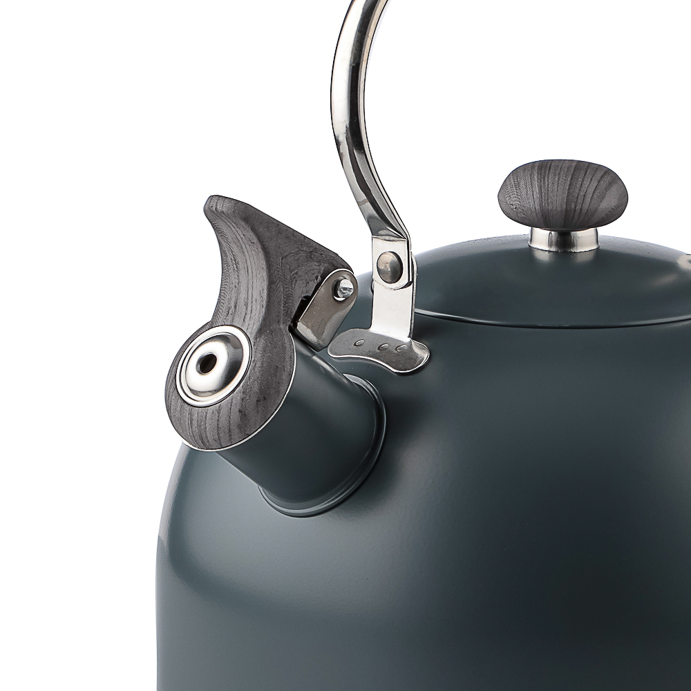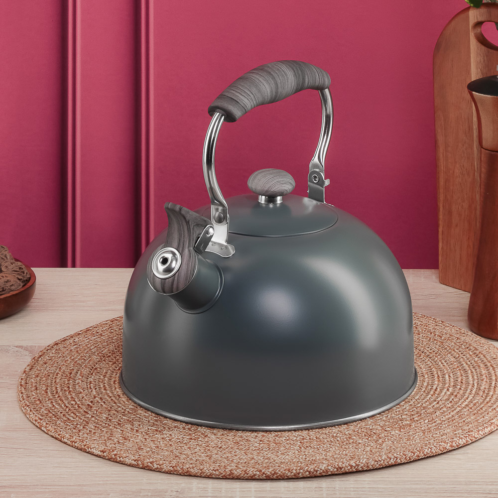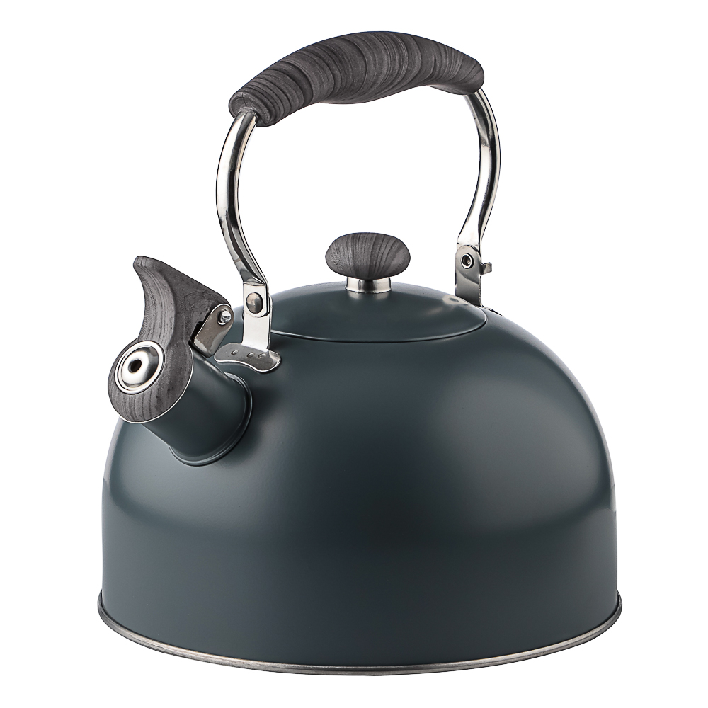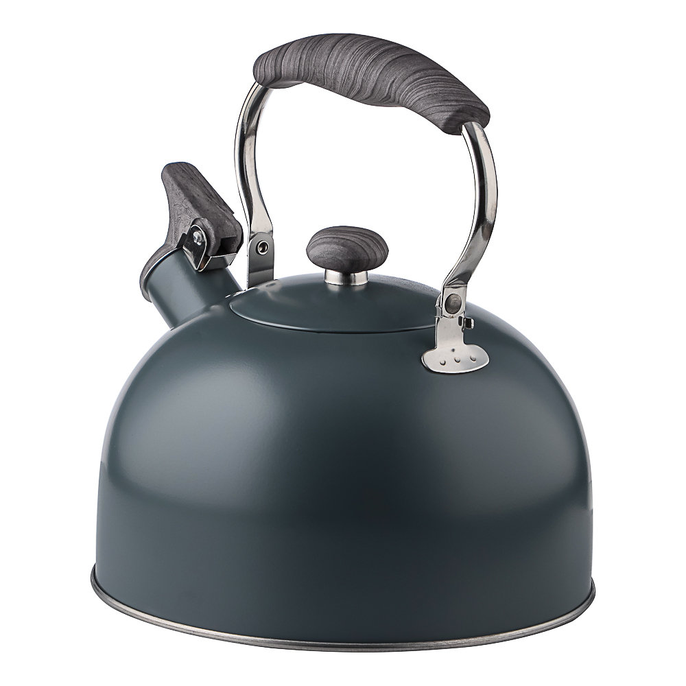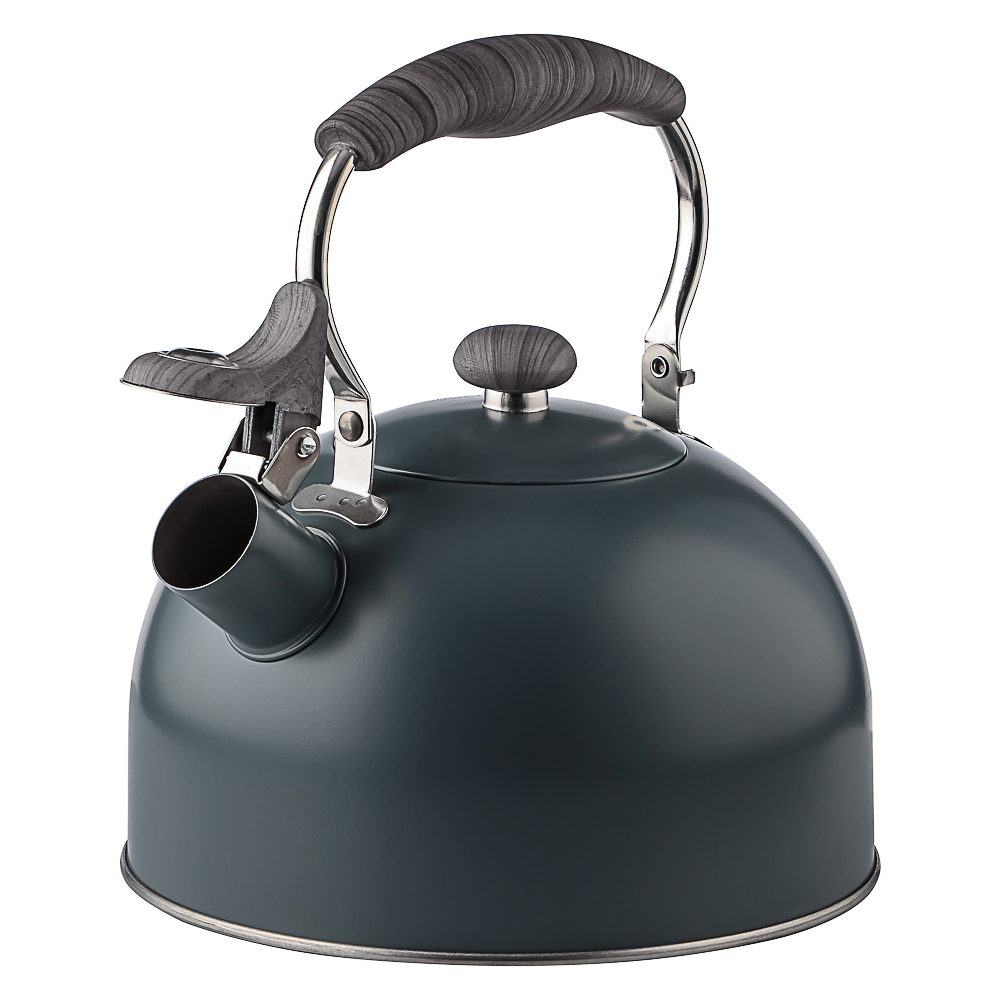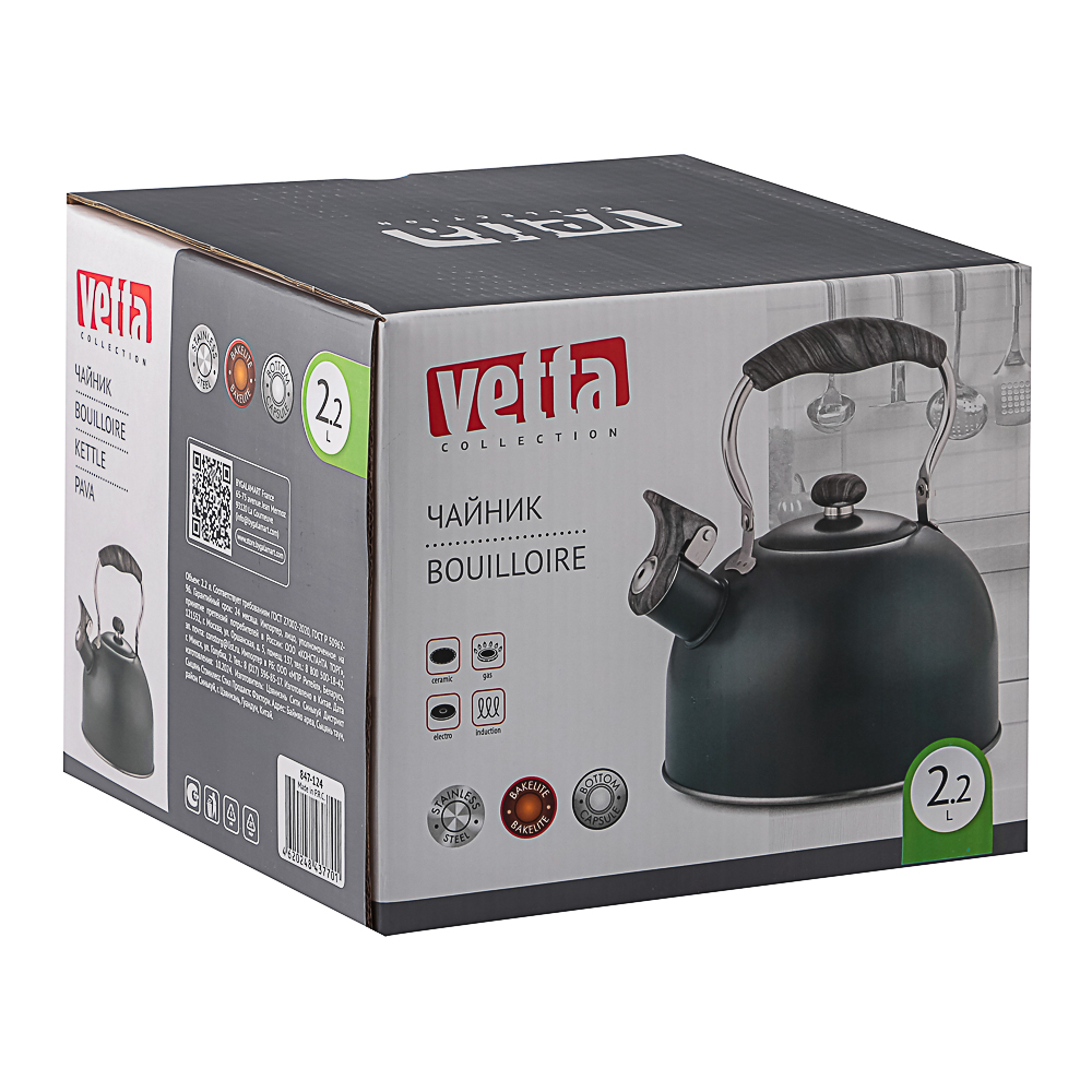 Стальной чайник VETTA "Ливорно" объемом 2,2 л – это отличное решение для повседневного чаепития. Имеет небольшой объем, что обеспечивает быстрое закипание. Стильный строгий дизайн в черном цвете с матовой поверхностью смотрится привлекательно и эстетично в интерьере кухни. Бакелитовая ручка не нагревается и не скользит в руках. Толстые стенки и дно из нержавеющей стали равномерно прогреваются и хорошо сохраняют тепло. Плотная крышка не смещается и не выпадает, а свисток надежно фиксируется в открытом положении. Носик не подтекает. Чайник подходит для всех типов плит, включая индукционные.