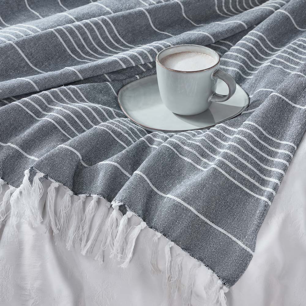 Стильный плед из натурального хлопка PROVANCE Нэви размером 140х200 см – практичный аксессуар для уюта в доме. Глубокий синий цвет с тонкими белыми полосками добавляет элегантности и прекрасно вписывается в любой интерьер. Прост в уходе, не вызывает аллергию и подходит для всей семьи. Его можно использовать как покрывало для дивана или кресла, а в прохладный вечер завернуться самому и насладиться теплом и комфортом. Плед PROVANCE Нэви – идеальное сочетание стиля и практичности!