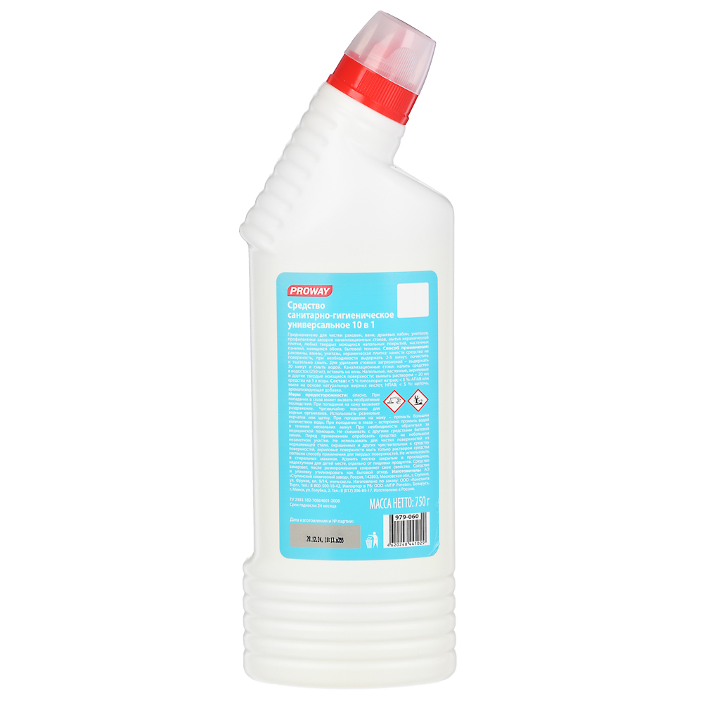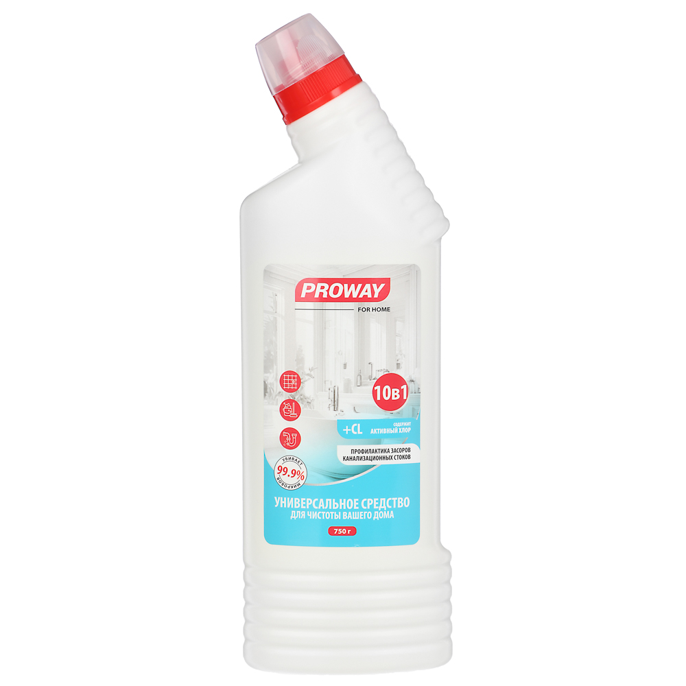 PROWAY – универсальное санитарно-гигиеническое средство 10в1 (750г) – ваш незаменимый помощник в уборке! Одно средство для всех поверхностей: раковины, ванны, унитазы, душевые кабины, керамическая плитка, любые твердые моющиеся напольные и настенные покрытия, моющиеся обои, а также бытовая техника. Эффективно удаляет грязь и жир, предотвращает засоры канализации. Для стойких загрязнений достаточно выдержать средство на поверхности до 30 минут. Экономичный расход: 20 мл на 5 л воды для мытья полов и стен.