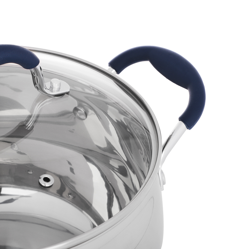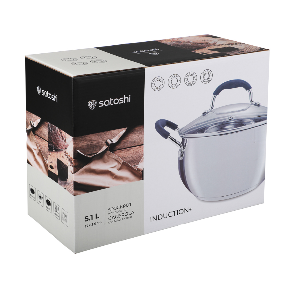 Кастрюля SATOSHI Альба – вместительная посуда объемом 5,1 л, идеально подходящая для приготовления супов, каш, компотов и других блюд для всей семьи. Изготовленная из высококачественной нержавеющей стали, она прослужит вам долгие годы. Ее диаметр 22 см и высота 12,5 см обеспечат комфортное приготовление даже больших порций. Прозрачная стеклянная крышка с удобным паровыпускным отверстием позволит вам контролировать процесс приготовления, предотвращая сильное кипение и дребезжание. Удобные ручки с силиконовыми накладками обеспечат безопасное использование, предотвращая ожоги. Кастрюля SATOSHI Альба совместима со всеми типами варочных поверхностей, включая индукционные. Готовьте с удовольствием и легкостью!