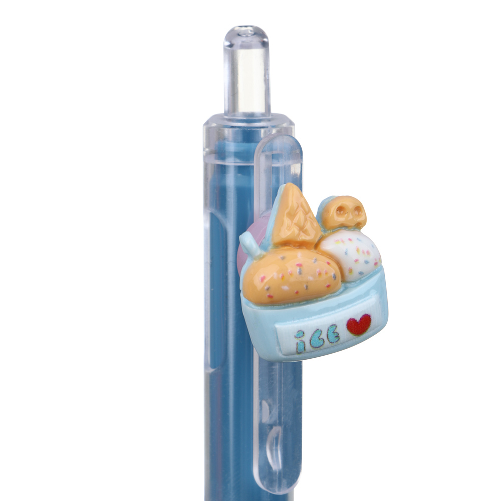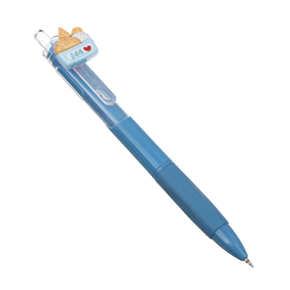 Гелевая авторучка с чернилами синего цвета с вращающейся фигуркой "Сладости" на клипе и антискользящей накладкой — это стильный и удобный канцелярский аксессуар. Вращающаяся фигурка сладостей на клипе делает ручку веселой и привлекательной, а антискользящая накладка обеспечивает удобство и комфорт при письме, предотвращая скольжение руки. Пишет ярко, аккуратно и не требует сильного нажатия. Не просвечивает через тетрадный лист, не смазывается. Такая ручка идеально подходит для тех, кто ценит как функциональность, так и оригинальный дизайн в своих канцелярских принадлежностях. Она станет отличным выбором для школьников и любителей ярких и необычных аксессуаров.