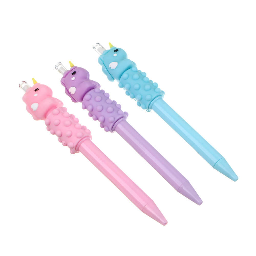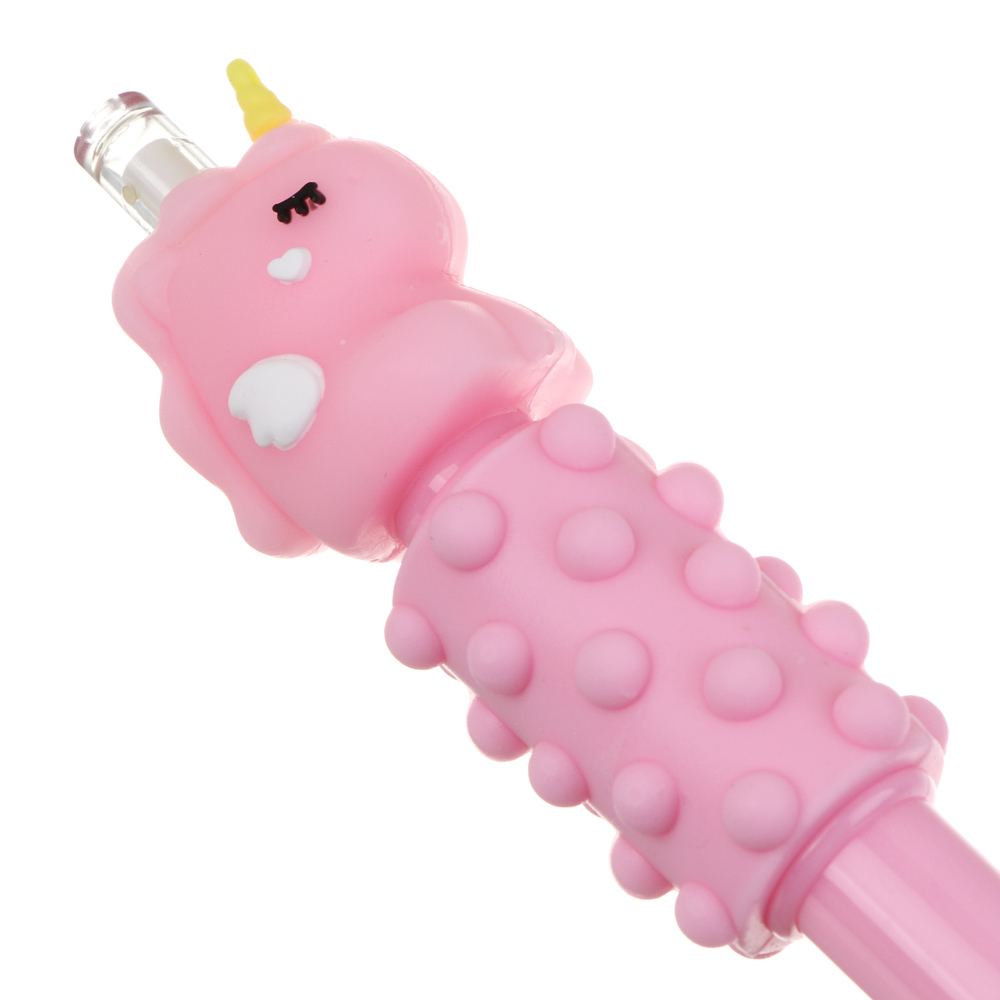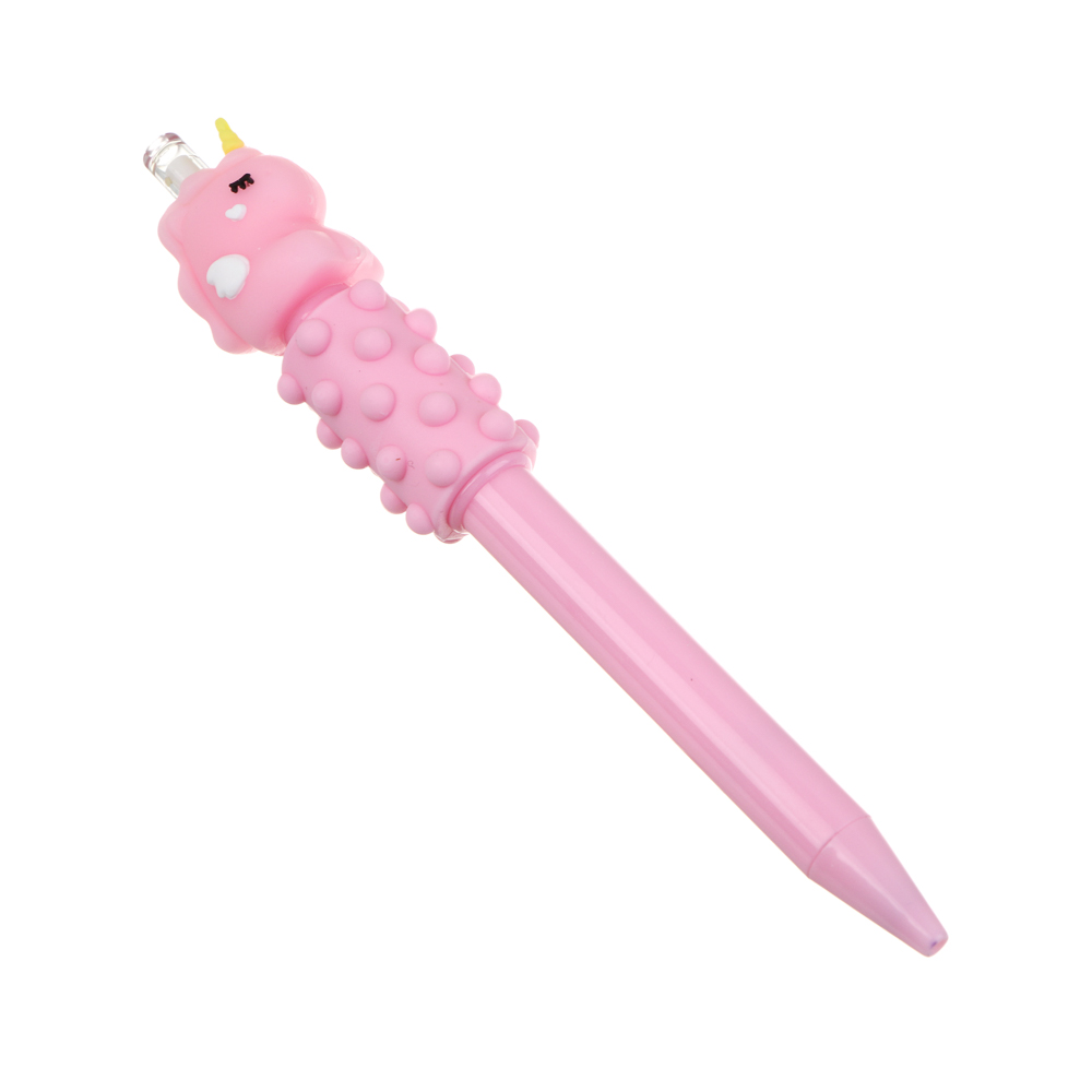 Шариковая ручка с чернилами синего цвета с вращающейся массажной вставкой в верхней части и фигуркой "Единорог" — это яркий и забавный канцелярский аксессуар, специально разработанный для детей. Массажная вставка помогает расслабить пальцы, создавая комфорт при письме, а фигурка единорога добавляет веселья и магии в учебный процесс. Пишет ярко, аккуратно и не требует сильного нажатия. Не просвечивает через тетрадный лист, не смазывается. Такая ручка не только удобна в использовании, но и станет любимым предметом среди школьников, благодаря своему оригинальному дизайну и веселому внешнему виду. Идеальный выбор для детей, которые любят яркие и необычные канцелярские товары!