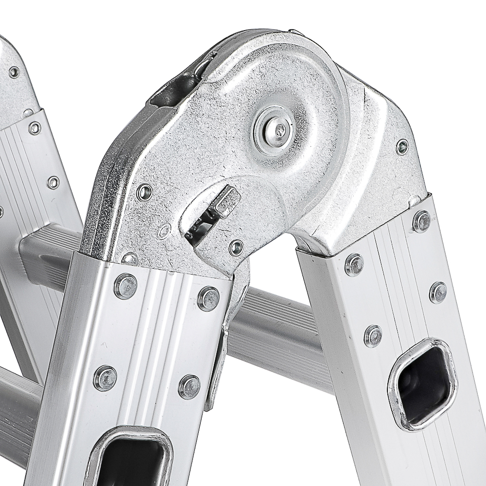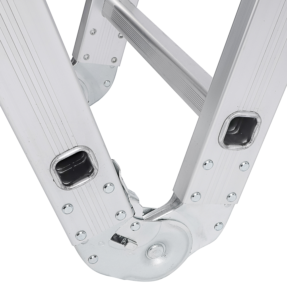 Лестница-трансформер "ЕРМАК" – это многофункциональное и надежное решение для выполнения различных задач на высоте. Изготовленная из прочного алюминия с толщиной профиля 1,2 мм, лестница сочетает в себе легкость, долговечность и устойчивость к коррозии, что делает ее идеальной для использования в быту, на даче или на строительной площадке. Лестница состоит из 4 секций, каждая из которых включает 4 ступени, что позволяет трансформировать ее в различные конфигурации: приставную лестницу, стремянку, платформу или двухстороннюю лестницу. Такая универсальность делает ее незаменимым инструментом для широкого круга задач. Максимальная нагрузка - 150 кг.