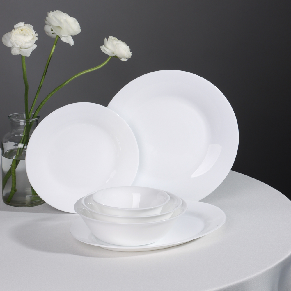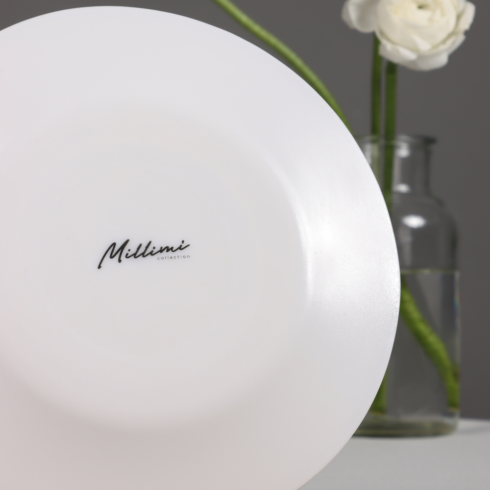 Тарелка десертная MILLIMI Белана диаметром 20,5 см – идеальное решение для сервировки ваших кулинарных шедевров. Может использоваться как блюдо для подачи торта, пирожных, закусок и фруктов, а также в качестве столовых тарелок для подачи вторых блюд. Белоснежная тарелка с гладкой поверхностью смотрится элегантно, сочетаясь с любой посудой, столовыми приборами и текстильными элементами оформления стола. Опаловое стекло обладает повышенной прочностью, не подвержено образованию сколов и трещин.