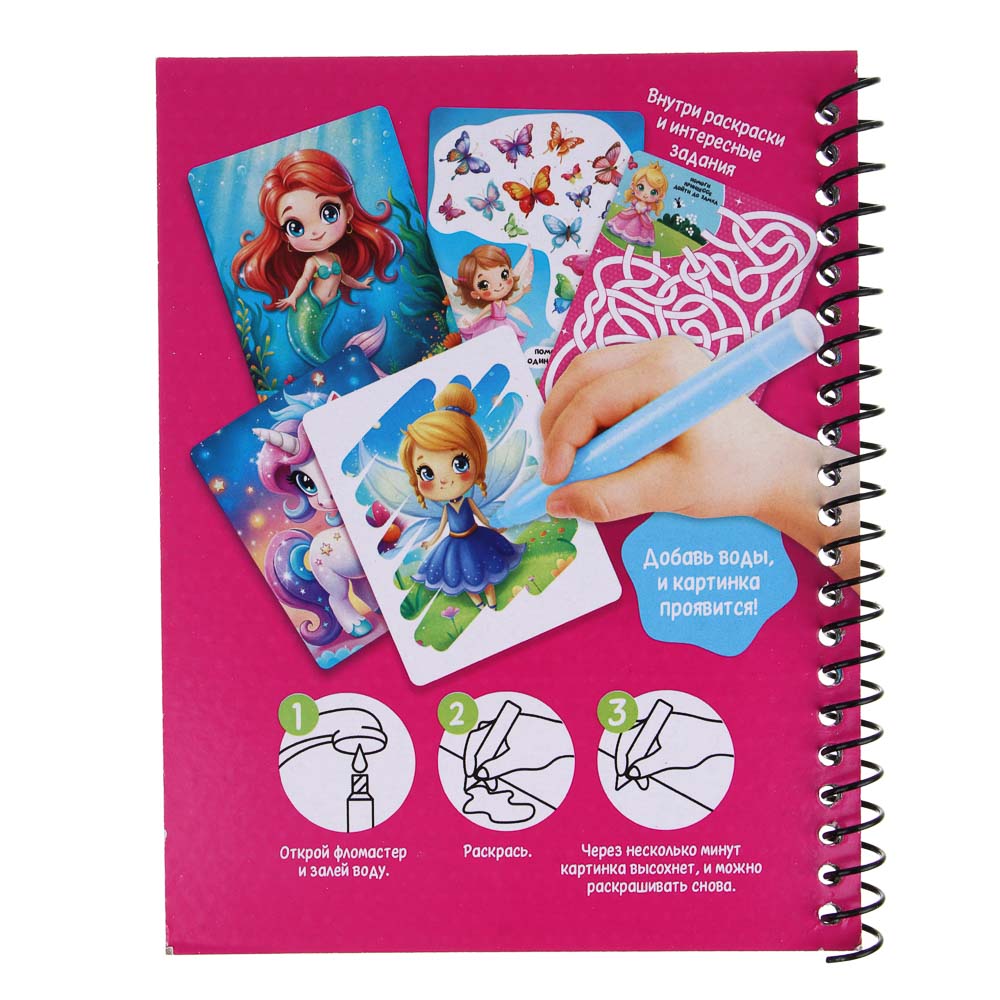 Книжка-раскраска ХОББИХИТ с водным фломастером - с ней играют и раскрашивают дома и в дороге. Как пользоваться: в фломастер заливают воду и раскрашивают картинки в книжке. Они высыхают, можно раскрашивать снова. На выбор 6 дизайнов книжек с разными картинками и заданиями. Подходит для девочек и мальчиков.