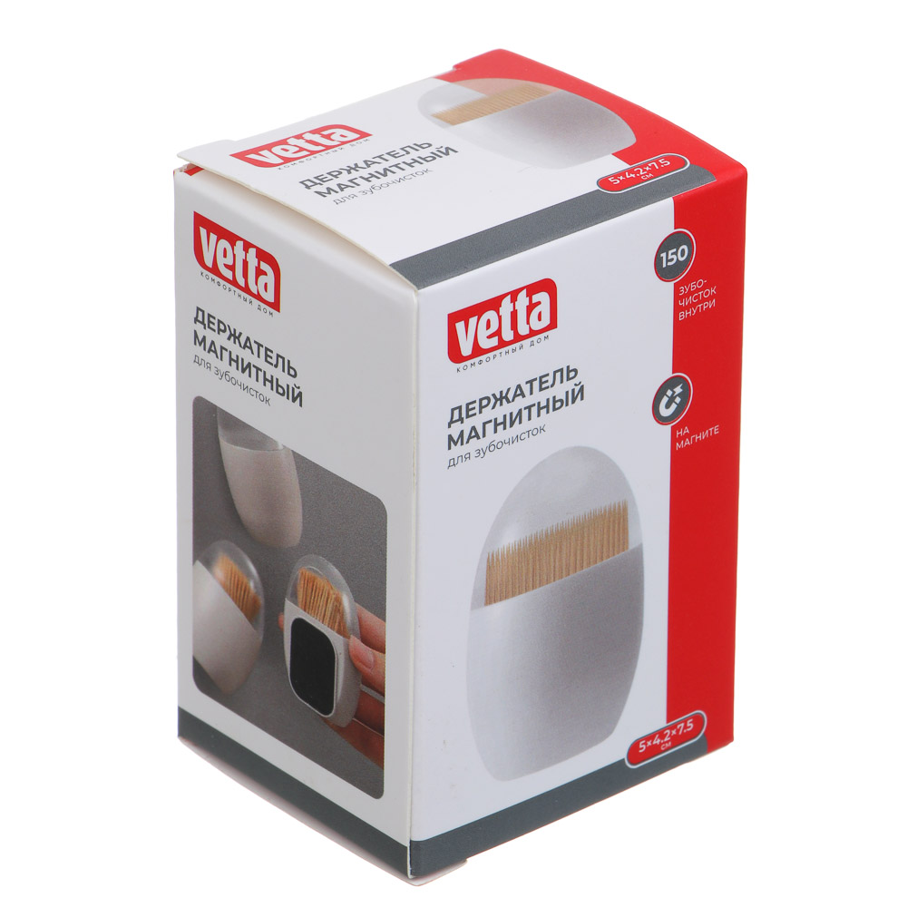 Надоело искать зубочистки по всему дому? Хотите добавить немного стиля и удобства на свою кухню? Тогда держатель зубочисток на магните VETTA – это то, что вам нужно!Этот уникальный аксессуар не только поможет вам всегда иметь под рукой необходимые зубочистки, но и станет стильным дополнением к вашему интерьеру. Благодаря магниту, держатель легко крепится к любой металлической поверхности, будь то холодильник, микроволновая печь или кухонный шкаф. В комплекте с держателем идут 150 бамбуковых зубочисток, которые обеспечат вам комфорт и гигиену на долгое время. Они изготовлены из экологически чистого материала и имеют острые концы, что делает их удобными в использовании.