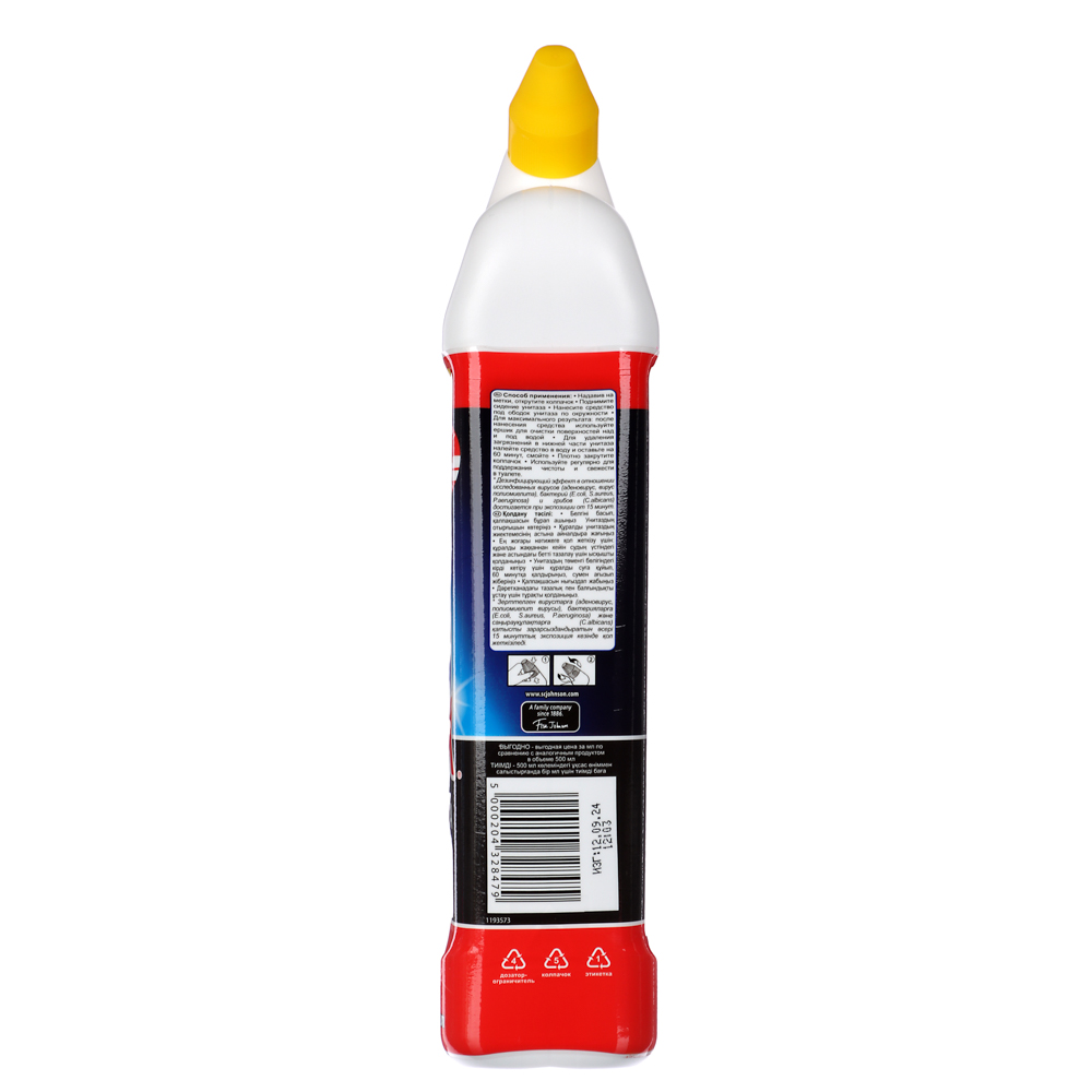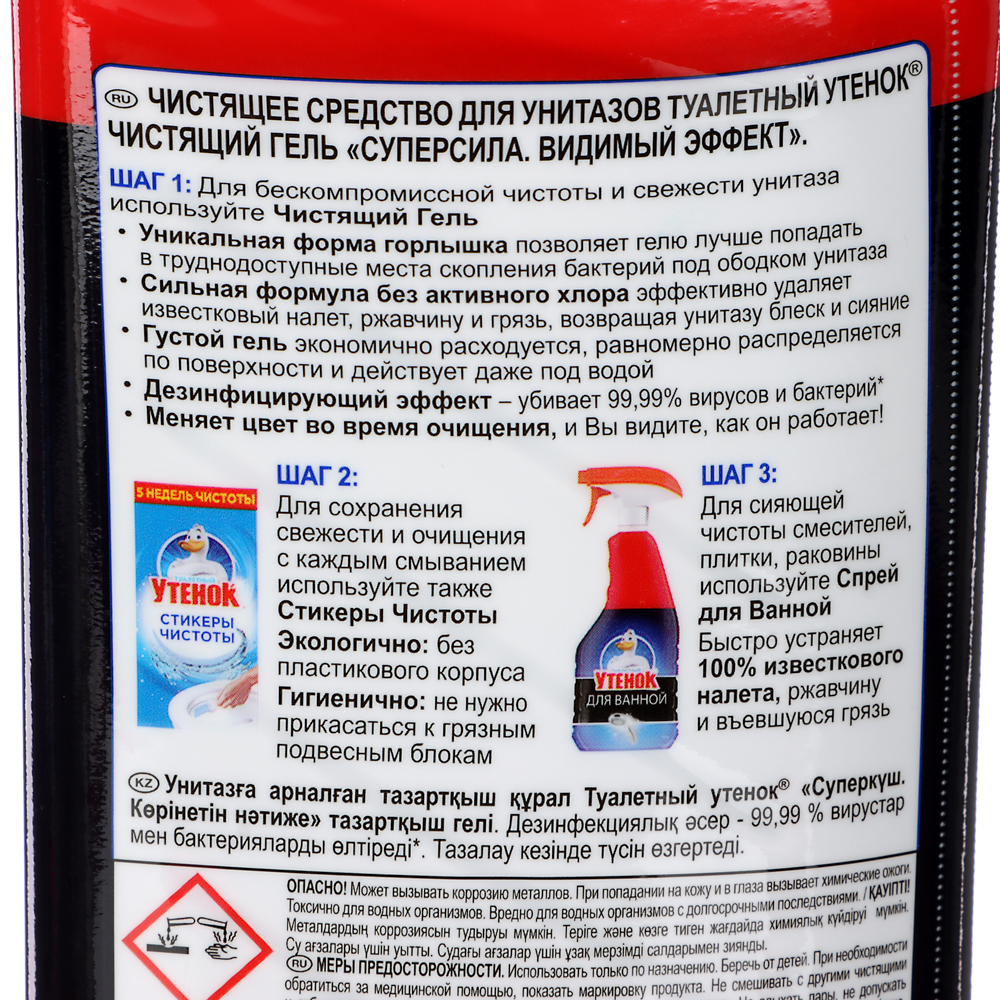 Уникальный гель для чистки унитаза — мощное средство для идеальной чистоты и свежести вашего туалета. Эффективно удаляет стойкие загрязнения, такие как ржавчина и известковый налёт, а также уничтожает 99,9 % бактерий и вирусов. Для достижения наилучшего результата рекомендуется использовать ёршик. Гель также можно применять для удаления загрязнений в нижней части унитаза: налить средство в воду и оставить на 60 минут, затем смыть.