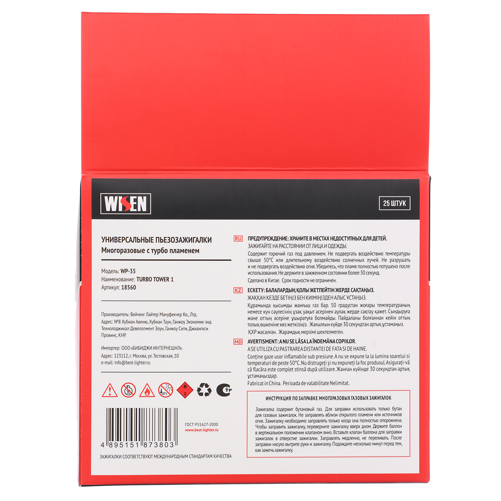 Зажигалка кухонная газовая TURBO TOWER 1 — это компактное и удобное устройство для зажигания газовых плит на кухне. Её размеры составляют 116 x 32 x 24 мм, что позволяет легко разместить её на кухонной столешнице или в ящике. Зажигалка работает на сжиженном газе, который подаётся через клапан на корпусе. Благодаря своей конструкции, она обеспечивает стабильное и мощное пламя, которое быстро зажигает газовые конфорки. Безопасность использования также является приоритетом.