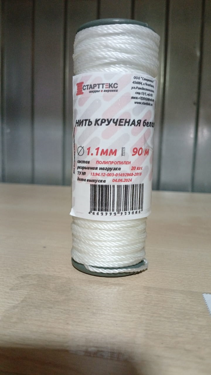 Купите товар «0981 Веревка кученая 3-х прядная ПП 1,1мм белая 90м» по оптовой цене с доставкой или самовывозом. В Екатеринбурге и других городах.