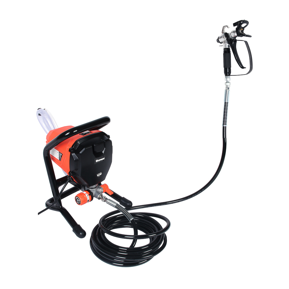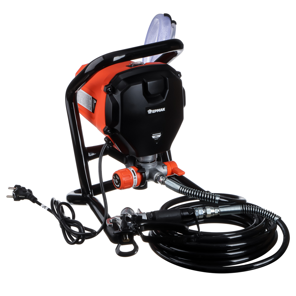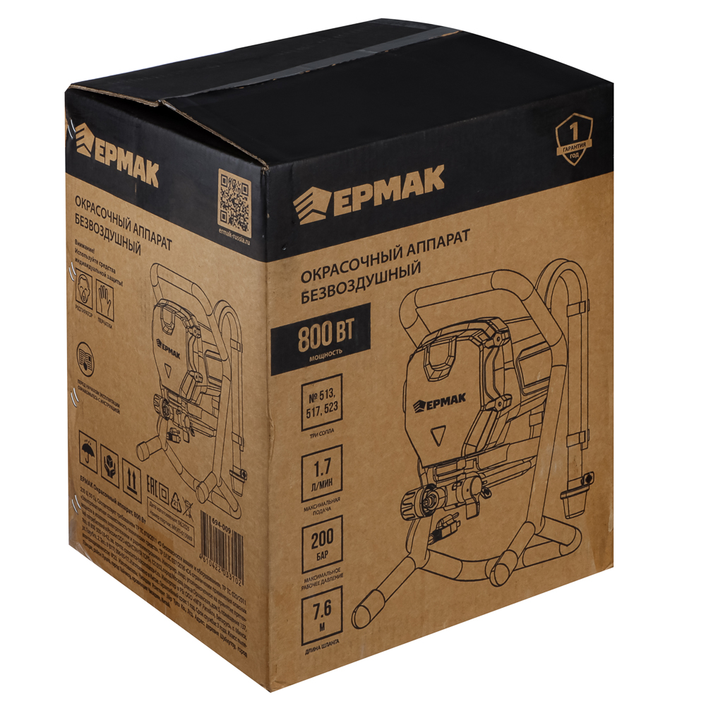 Окрасочный аппарат «Ермак» мощностью 800 Вт предназначен для быстрого и равномерного нанесения лакокрасочных материалов различного типа. Благодаря максимальному рабочему давлению 200 бар (3000 psi) и подаче 1,7 л/мин он обеспечивает высокую производительность при покраске больших поверхностей. Аппарат совместим с широким спектром ЛКМ, включая латексные, эмалевые краски, грунтовки, лаки и составы для дерева. Регулируемое механическое давление позволяет точно настраивать подачу материала, а 7,6-метровый шланг обеспечивает мобильность при работе. В комплекте идут три сменных сопла (0.013", 0.017", 0.023") с фильтрами для разных типов покрытий. Оптимальное расстояние распыления (35–40 см) снижает риск подтёков и повышает качество покрытия. Уровень шума (84–96 дБ) соответствует стандартам для профессионального оборудования.