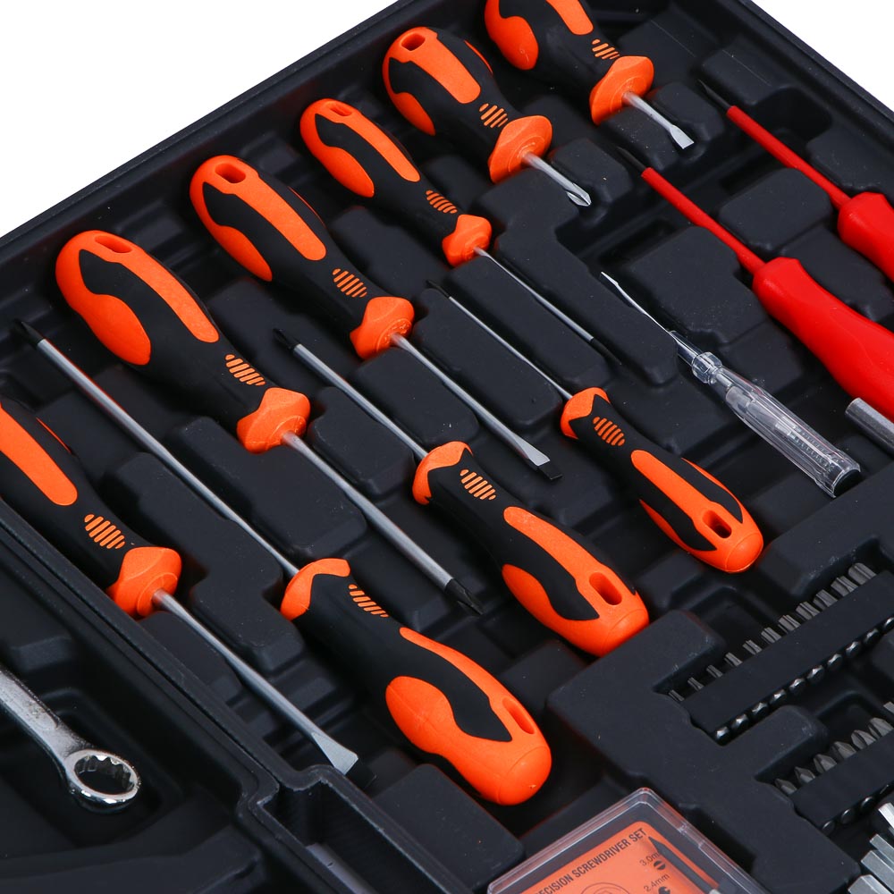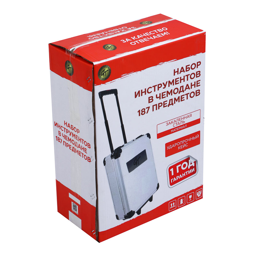 GT Набор инструментов 187 предметов — это универсальный комплект, включающий разнообразные инструменты для ремонта и обслуживания автомобилей, велосипедов и других транспортных средств. В наборе представлены стандартные и прецизионные отвёртки, ключи, режущие насадки, плоскогубцы, трещотки, уровень, расходные материалы и электрический тестер. Инструменты изготовлены из высококачественной углеродистой стали и размещены в удобном алюминиевом чемодане, который обеспечивает надёжное хранение и транспортировку. Этот набор станет незаменимым помощником для любого мастера и отличным подарком для мужчины на любой праздник.