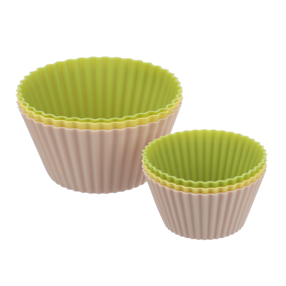Набор силиконовых форм VETTA из 12 штук различных размеров (7 см и 5 см) станет отличным дополнением для вашей кухни. Формы изготовлены из высококачественного силикона, который безопасен для здоровья и легко очищается. Они идеально подходят для выпечки маффинов, кексов и других кондитерских изделий. Гибкий материал обеспечивает легкое извлечение выпечки, не повреждая её. Набор включает формы двух размеров, что позволяет готовить порционные десерты разного объема и создавать разнообразные кулинарные шедевры. Силиконовые формы VETTA устойчивы к высоким температурам и подходят для использования в духовке, микроволновке, холодильнике и морозильной камере.