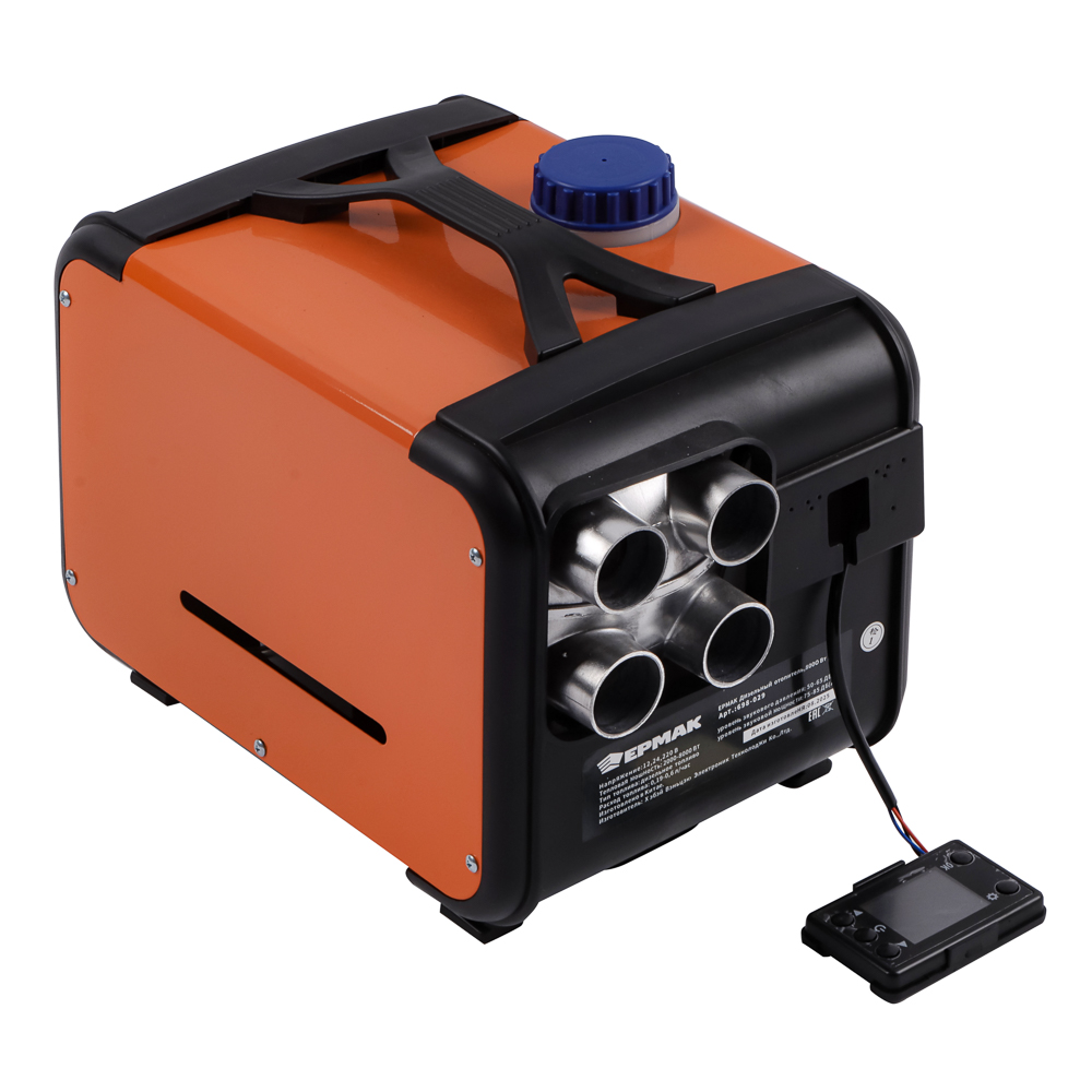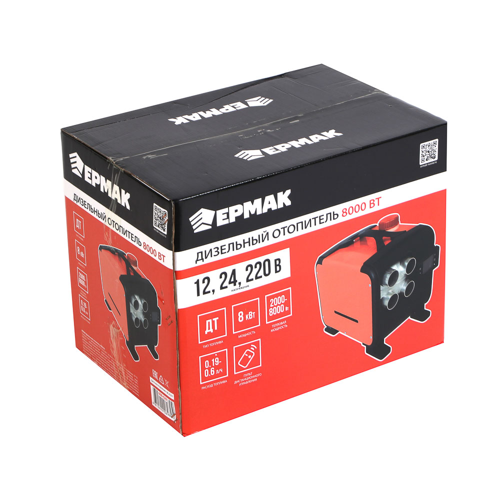 Дизельный отопитель ЕРМАК 8000 ВТ – это качественное и надежное тепловое оборудование, которое обеспечит автономное тепло для любых задач и условий. Теплогенератор используется для обогрева помещений, лишенных стационарного отопления. • Регулируемая настройка тепловой мощности от 2000 до 8000 Вт позволяет мягко прогреть небольшой гараж или мастерскую или интенсивно отапливать просторный склад, бытовку или дачный домик. • Работает на дизельном топливе. • Напряжение 12/24/220 В делает аппарат идеальным спутником для водителей, строителей, дачников и владельцев складов, так как он одинаково эффективно работает от автомобильного прикуривателя, бортовой сети спецтехники или бытовой розетки. • Экономичный расход топлива от 0,19 до 0,6 л/ч в минимальном режиме позволяет значительно снизить затраты на обогрев. • Оснащен информативным дисплеем для контроля параметров и пультом дистанционного управления для комфортной настройки режимов.