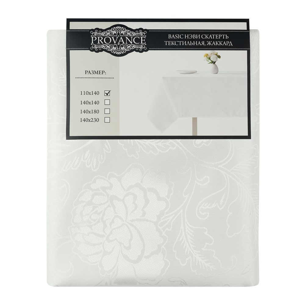 Скатерть PROVANCE Нэви текстильная размером 110х140 см станет украшением праздничного стола по случаю празднования дня рождения, Нового года или другого праздника. Благородный цвет и растительный рисунок придают яркости и торжественности сервировке. Изделие выполнено из полиэстера, легко очищается и хорошо держит форму. Сочетается с любой посудой и столовыми приборами, а также с различными вариантами столового текстиля.