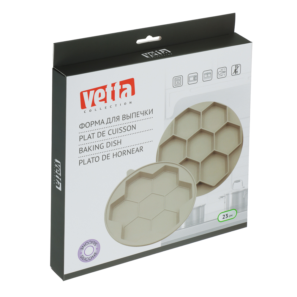 Форма для выпечки с крышкой VETTA для котлет, сырников, оладий, 23 см – это силиконовая посуда для приготовления полезных блюд методом запекания. Содержит 7 ячеек шестиугольной формы. Предусмотрена крышка для удобного и правильного хранения готовых блюд. Форма обеспечивает равномерный нагрев и приготовление без подгорания, а готовые изделия легко извлекаются из формы. Пищевой силикон не выделяет вредных веществ, не деформируется, не накапливает запахи и бактерии и может использоваться в диапазоне температур от -40 до +240 С. Изделие можно мыть в посудомоечной машине. 3 цвета на выбор.